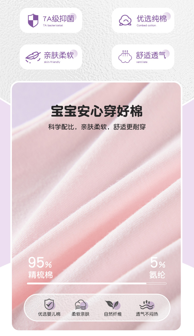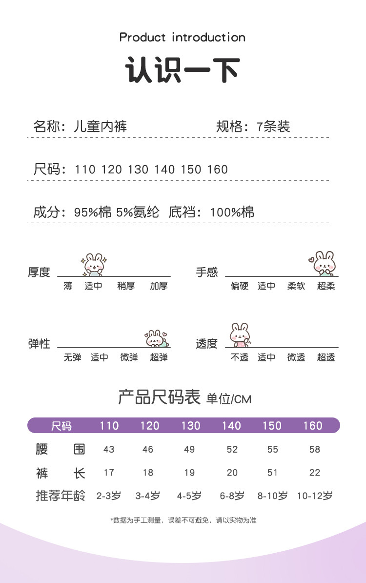 商品名称:【7A级抑菌】7条装儿童内裤女100%纯棉里档女童内裤中大童 649611