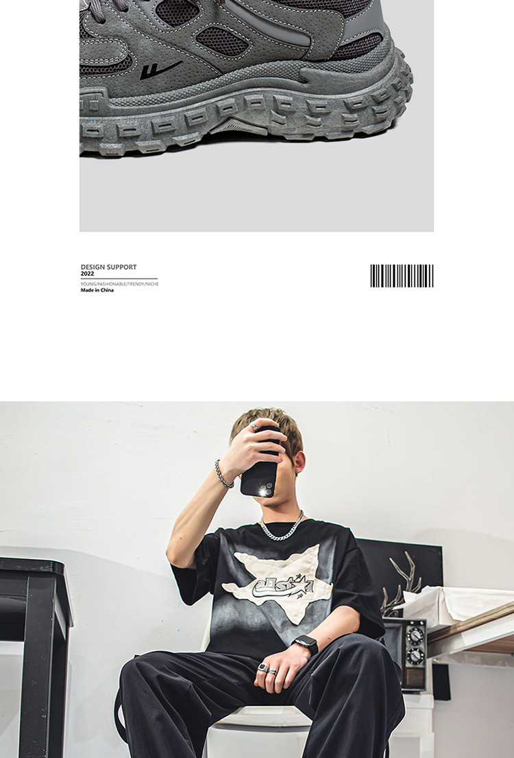 商品名称:春季热卖透气舒适男鞋学生运动休闲百搭跑步厚底黑武士老爹鞋 563216