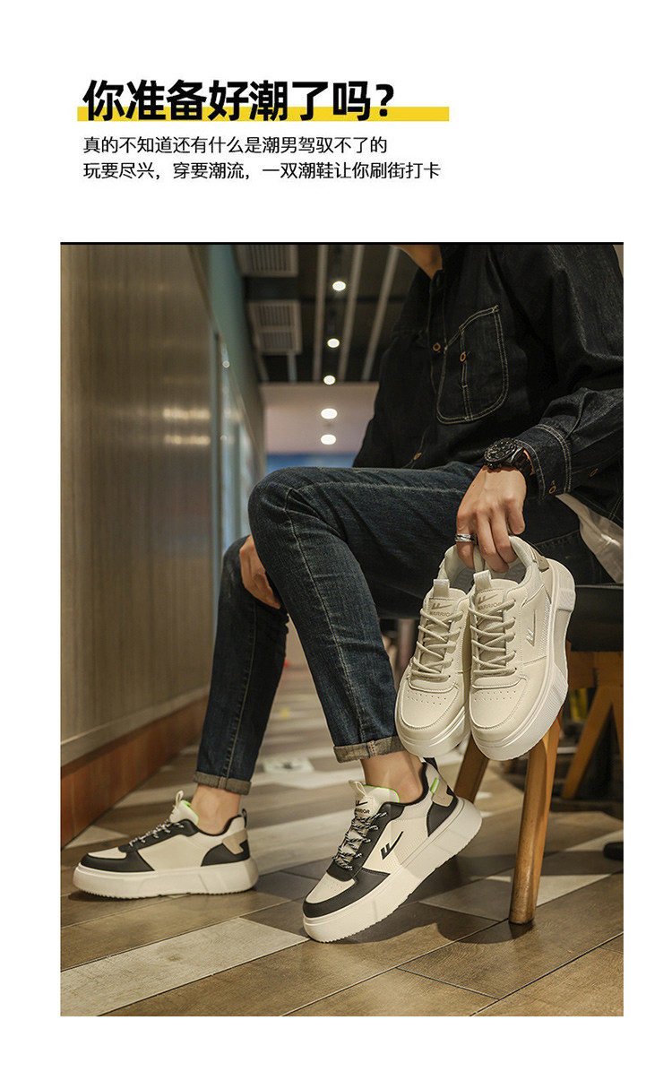 秋季时尚厚底板鞋潮流百搭跑步运动鞋舒适学生工作小白鞋男鞋 136528