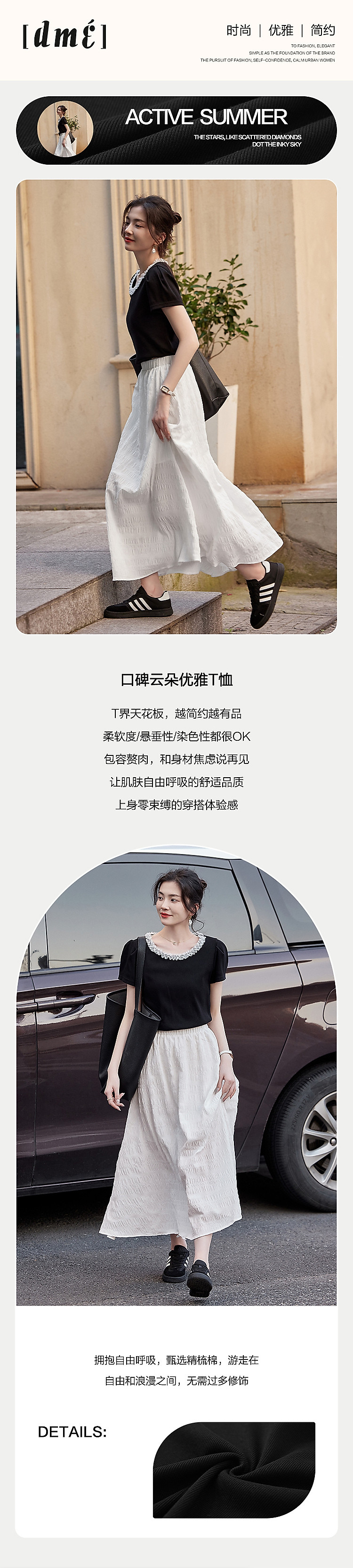 【2024夏季】时髦正肩短袖T恤女弹力显瘦基础百搭针织上衣 403028