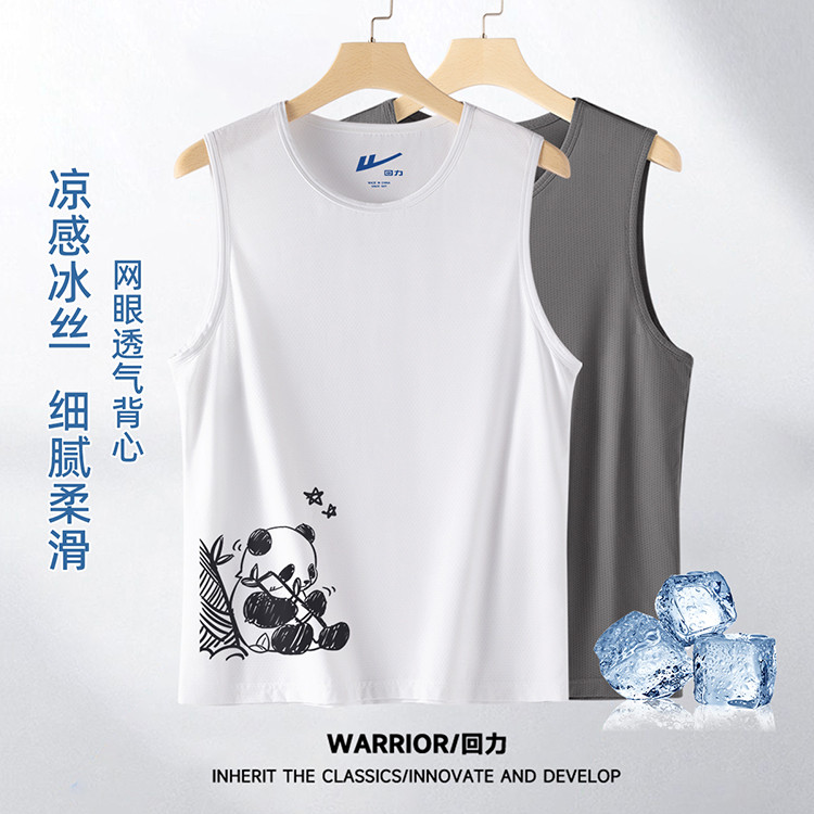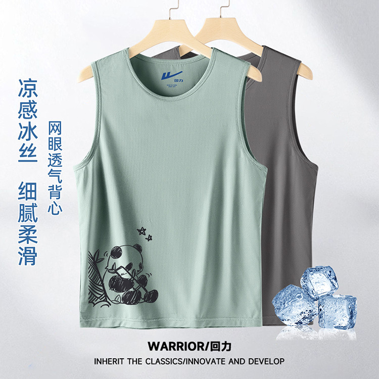 【冰丝凉感】背心男青少年冰丝无袖汗衫国潮熊猫卡通潮牌运动坎肩 757267