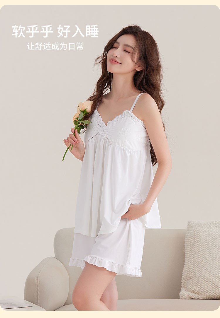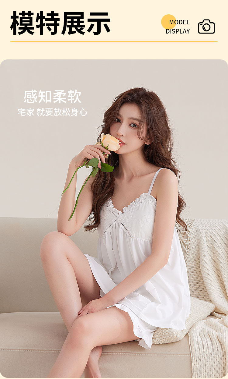 商品名称:【100%棉】免穿女士吊带睡衣夏款舒适可外穿家居服套装带胸垫 581131