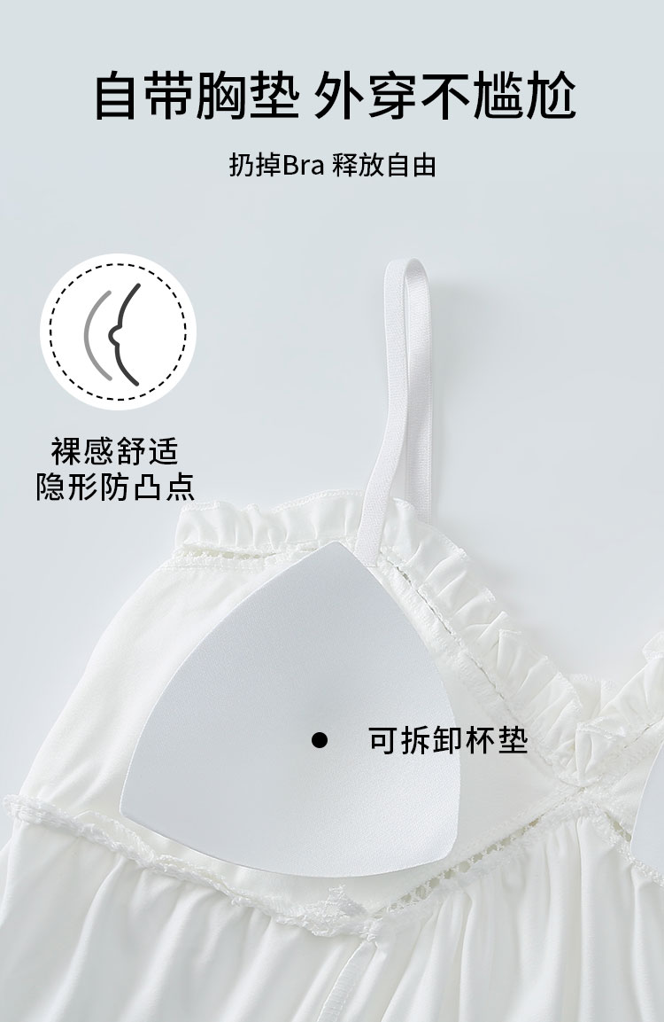 【100%棉】免穿女士吊带睡衣夏款舒适可外穿家居服套装带胸垫 581131
