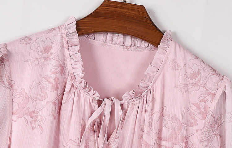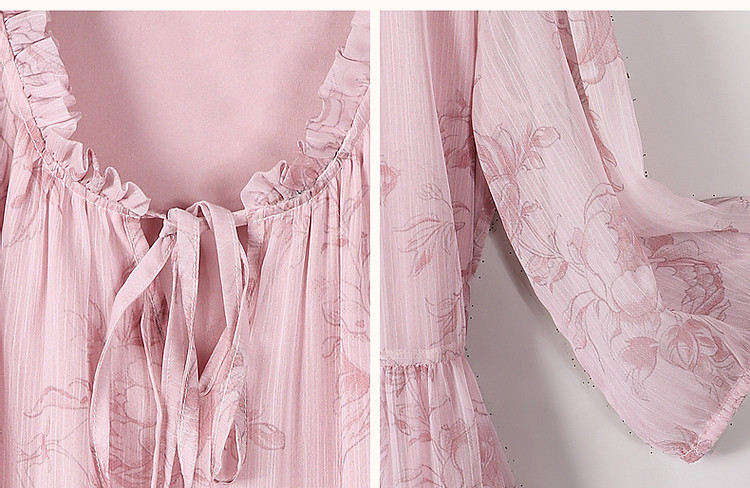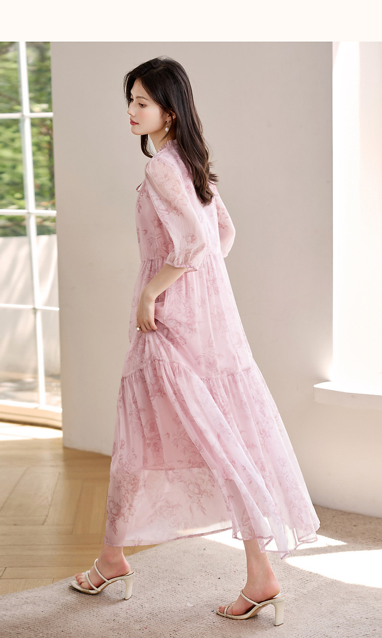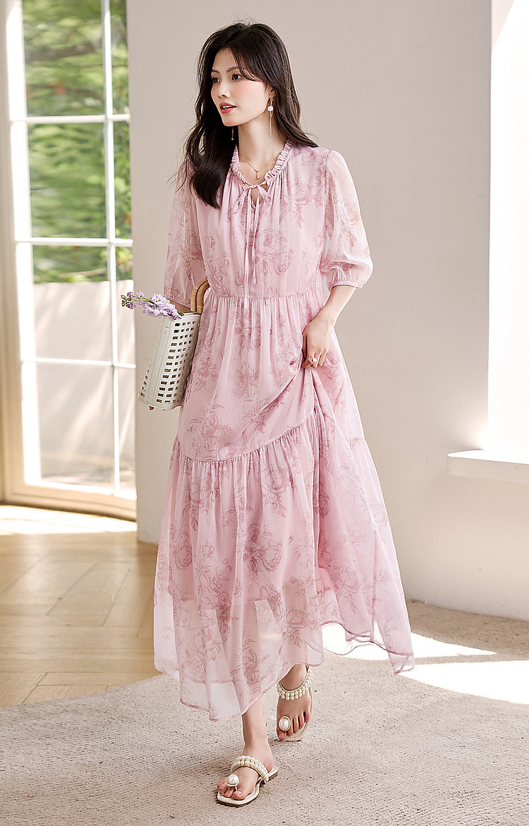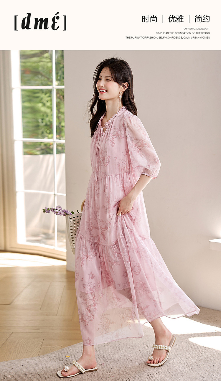 商品名称:【似罗绮飘香】夏国风新中式度假淑女系带领雪纺印花七分袖连衣裙 633281