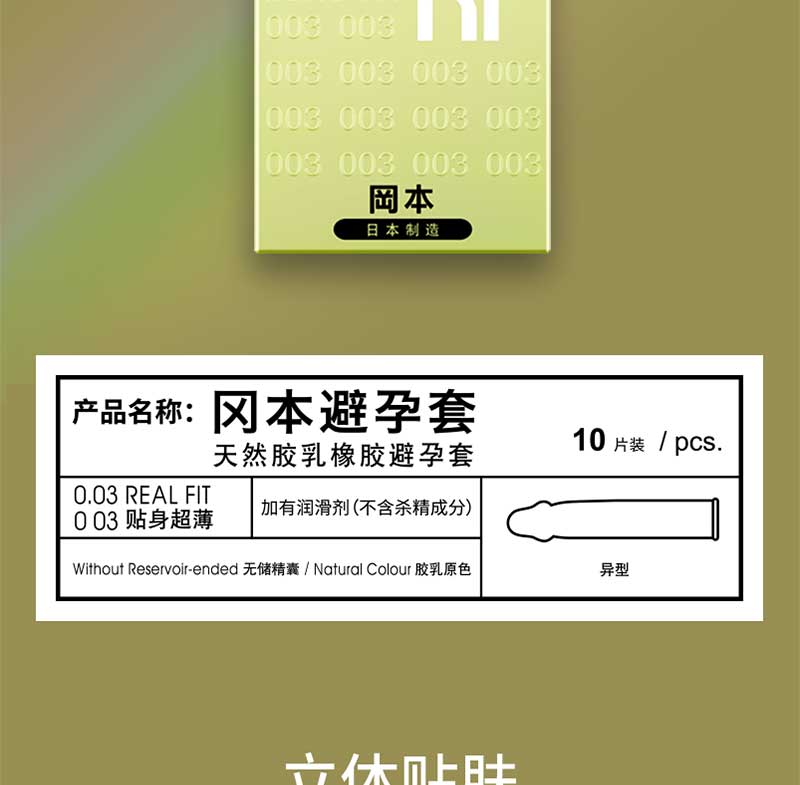 商品名称:Okamoto冈本OK避孕套-0.03黄金贴身超薄 10片装*3盒