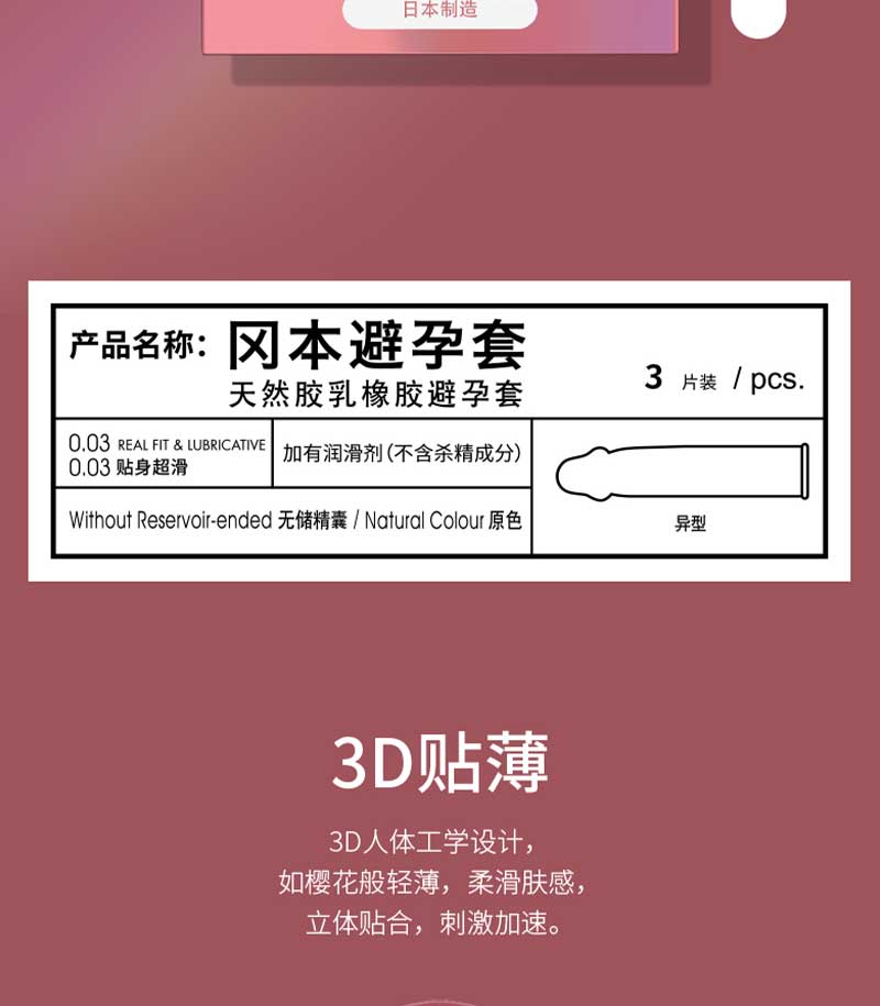 商品名称:Okamoto冈本OK避孕套-0.03贴身超滑 3片装*3盒