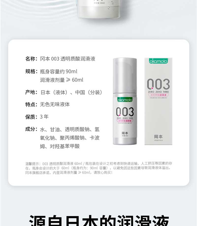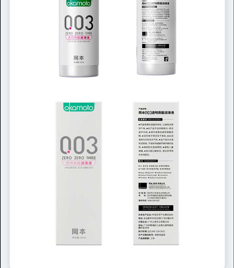 商品名称:冈本 003透明质酸润滑液60ml*3支
