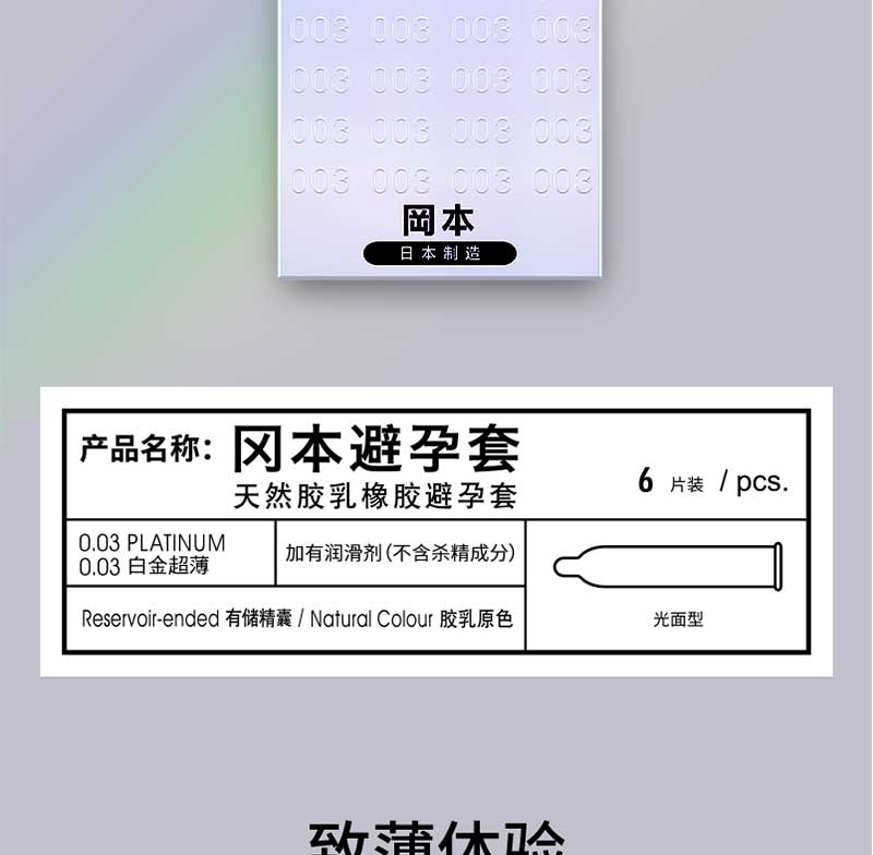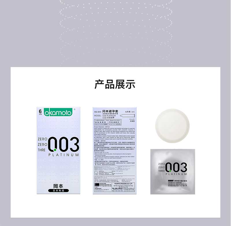 商品名称:Okamoto冈本OK避孕套-0.03白金超薄 6片装*3盒