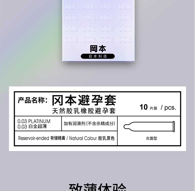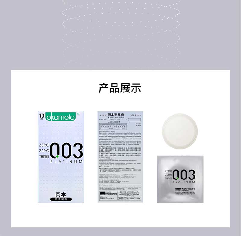 商品名称:Okamoto冈本OK避孕套-0.03白金超薄 10片装*3盒