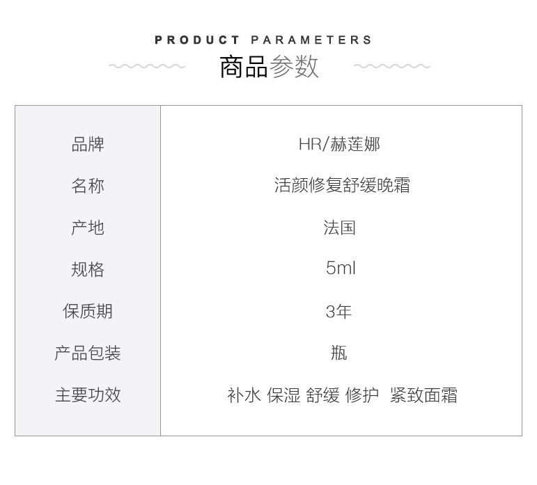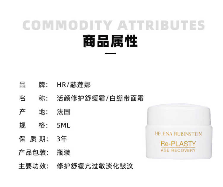 商品名称:HR/赫莲娜 活颜舒缓面霜 黑绷带/白绷带 5ml