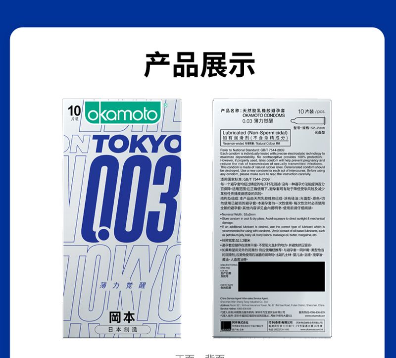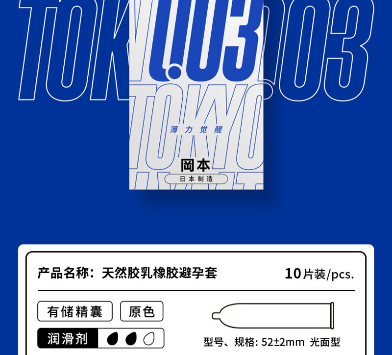 商品名称:Okamoto冈本OK避孕套-TOKYO薄力觉醒0.03 10片装*2盒