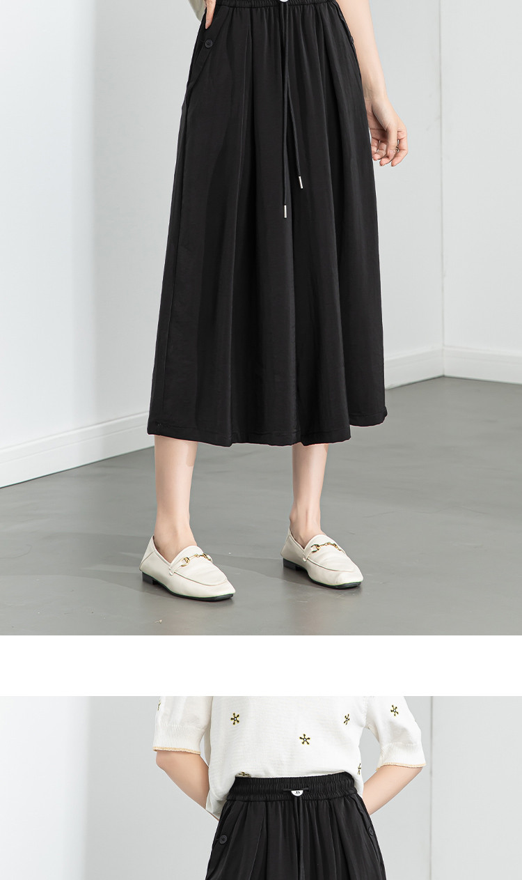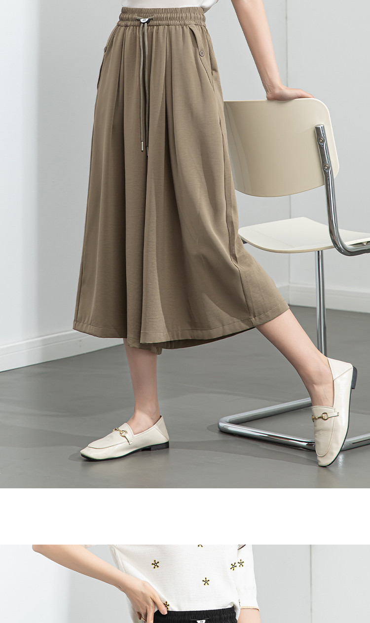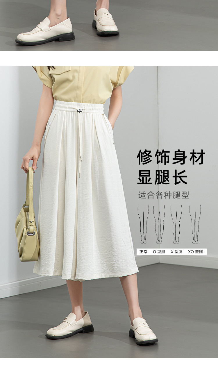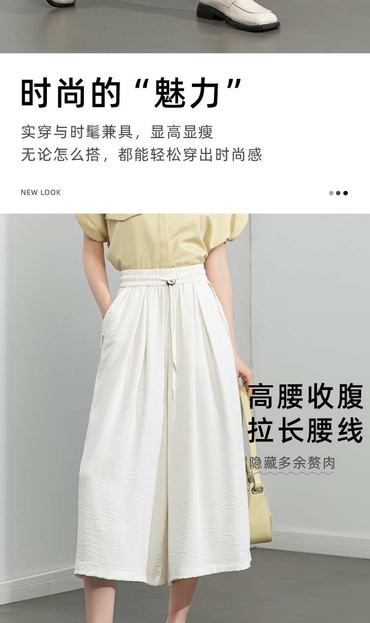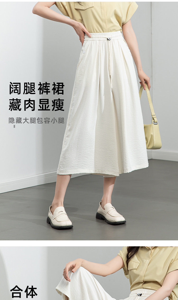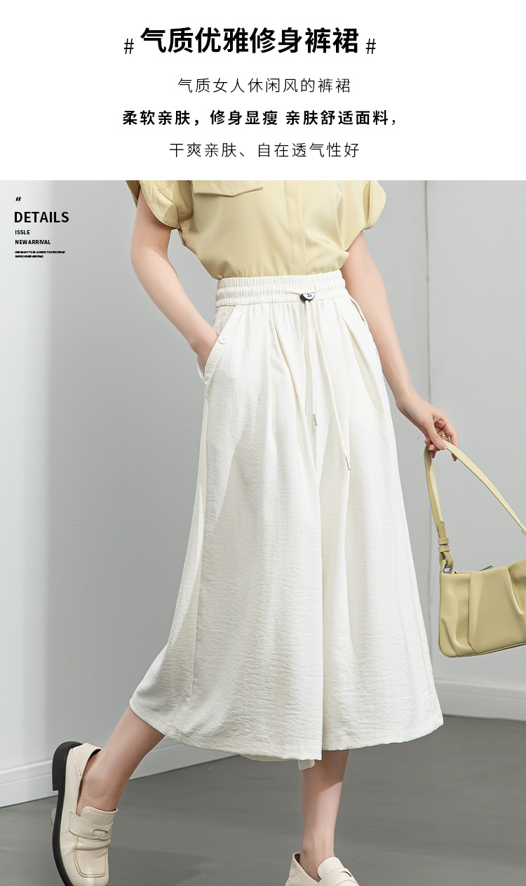 商品名称:夏季透气薄款空气感抽绳裙裤时尚百搭通勤休闲七分裤女 346655