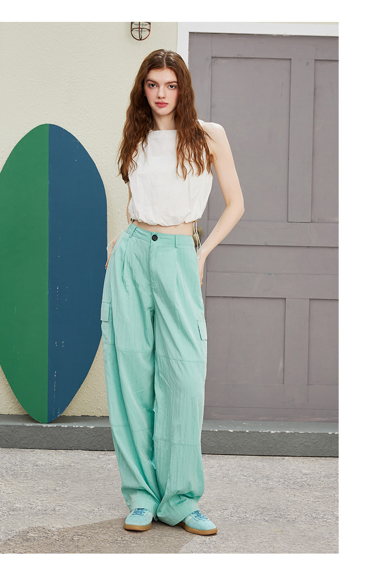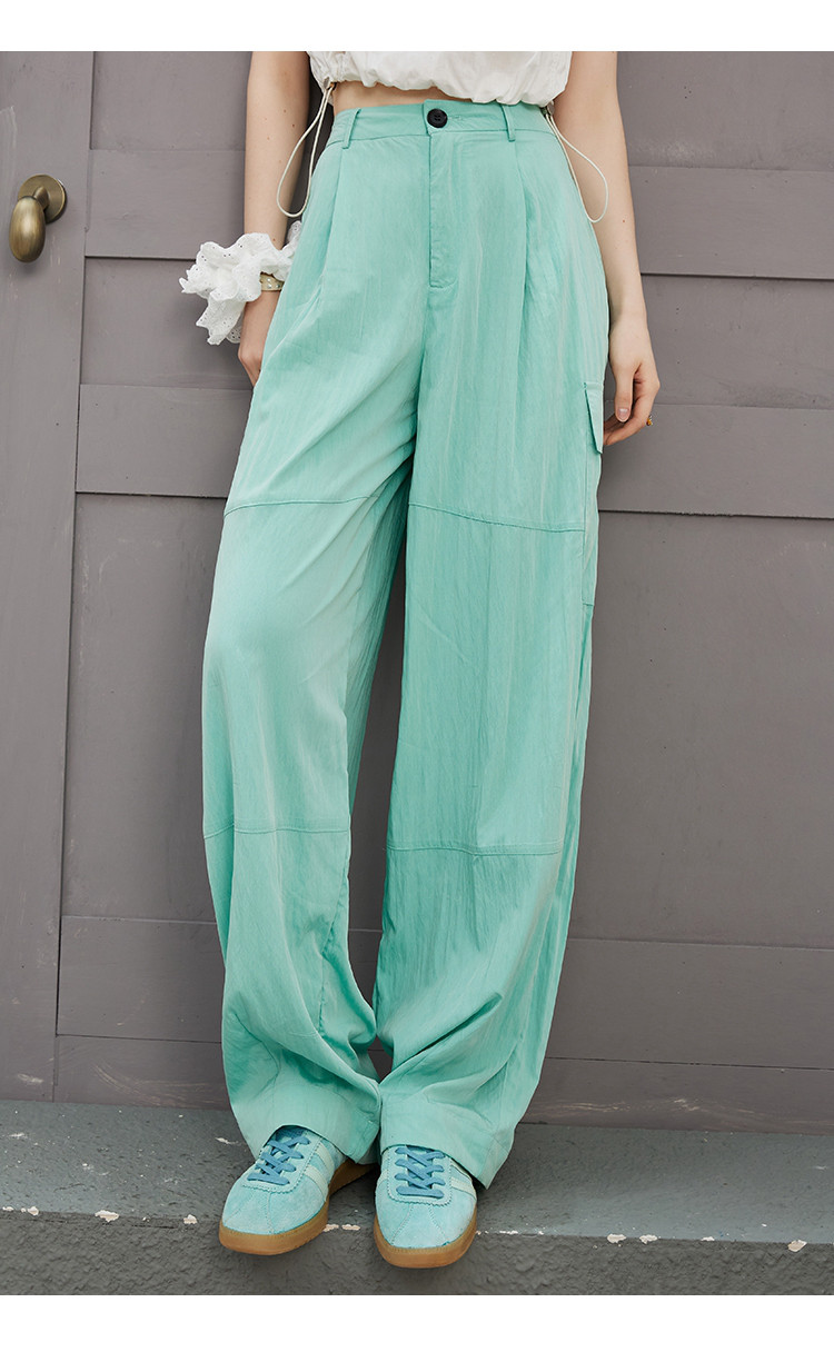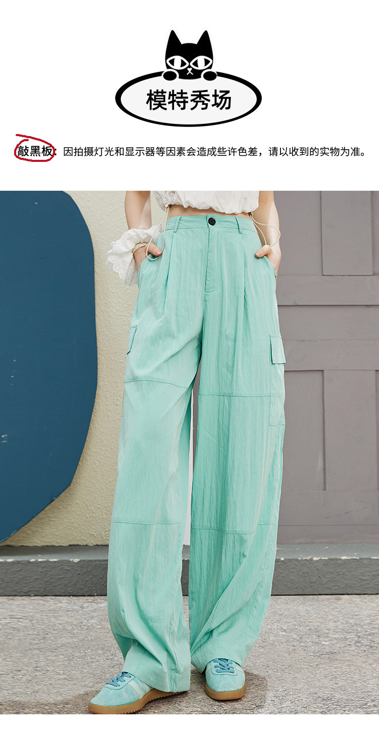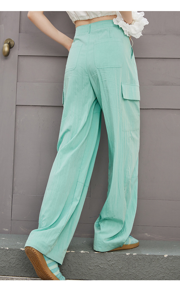 商品名称:清爽薄荷曼巴宽松大口袋阔腿裤夏季小清新简约女式休闲裤 116573