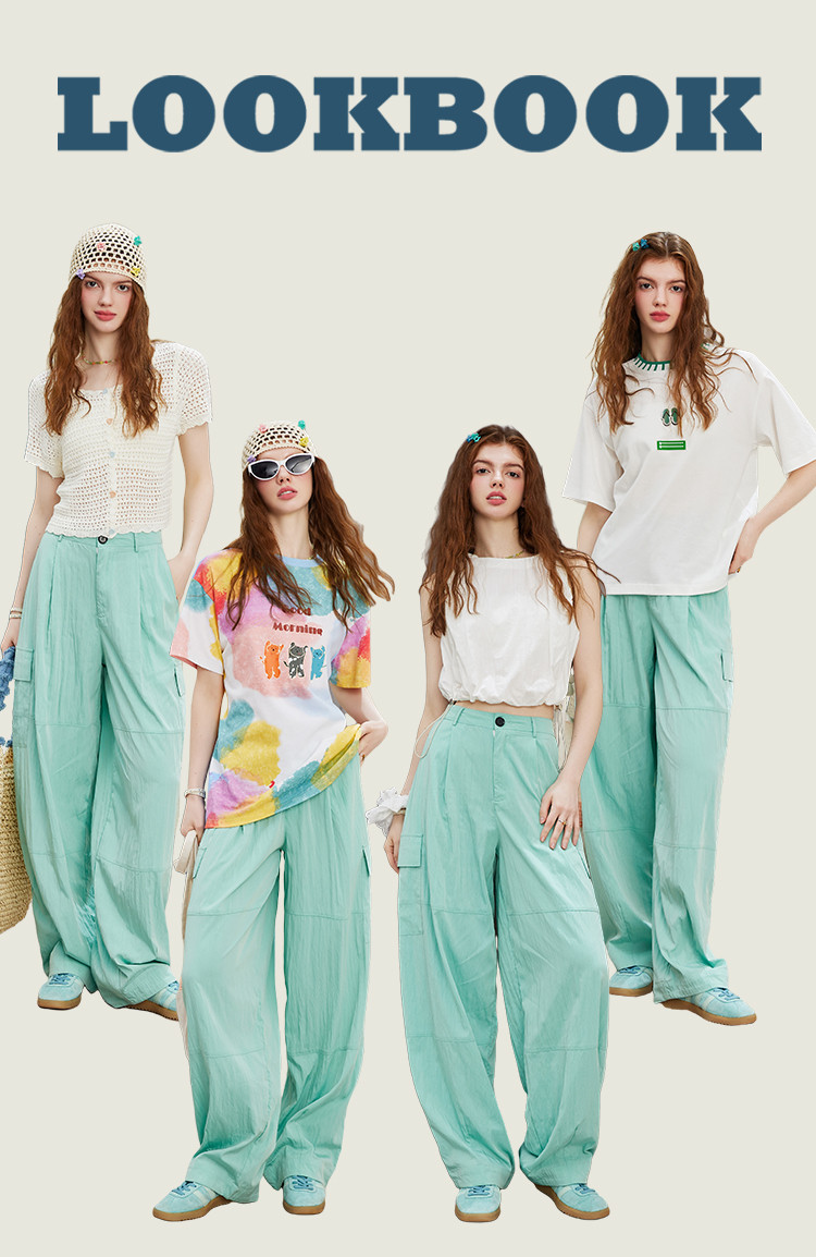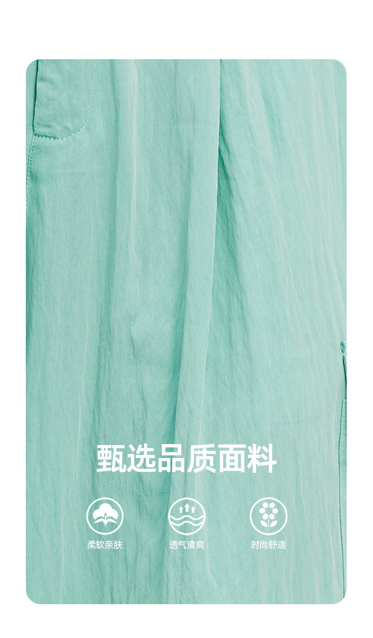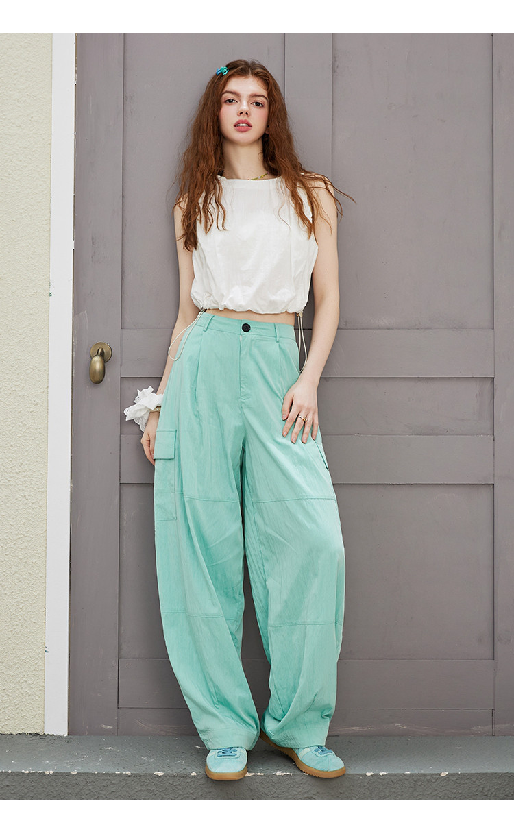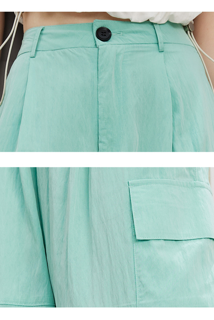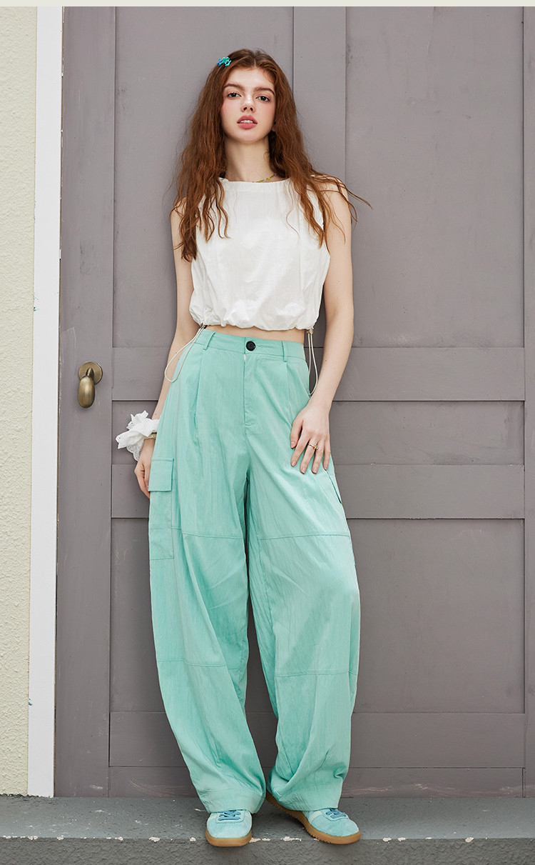 商品名称:清爽薄荷曼巴宽松大口袋阔腿裤夏季小清新简约女式休闲裤 116573