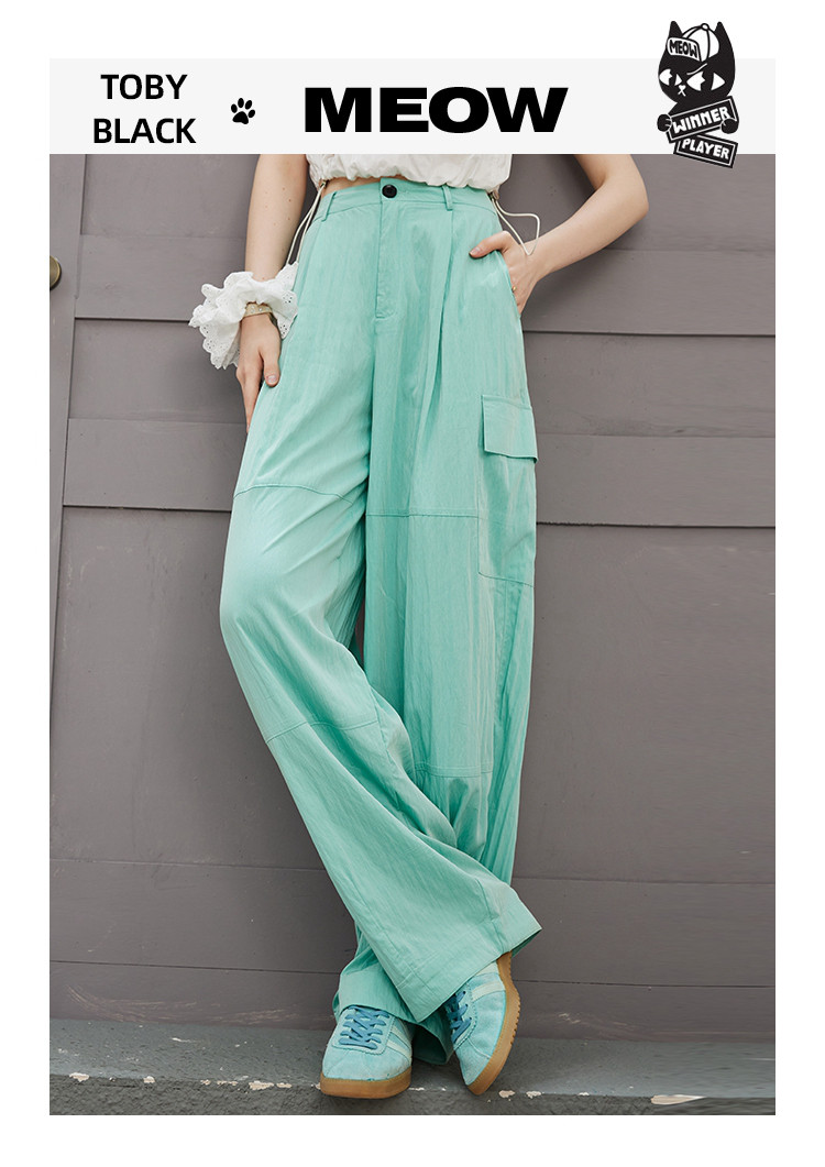 清爽薄荷曼巴宽松大口袋阔腿裤夏季小清新简约女式休闲裤 116573