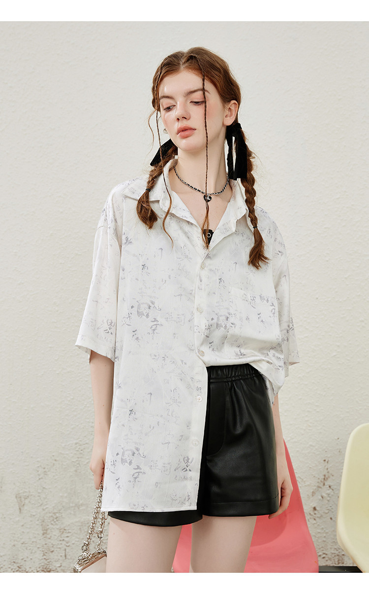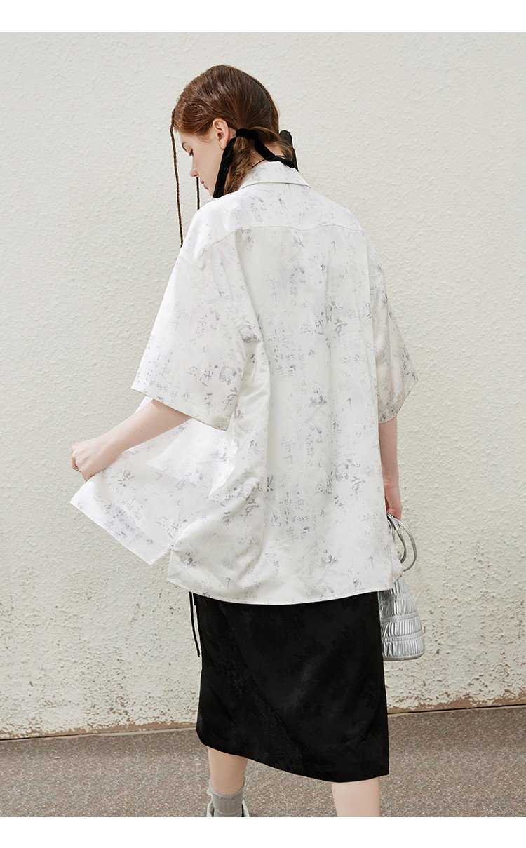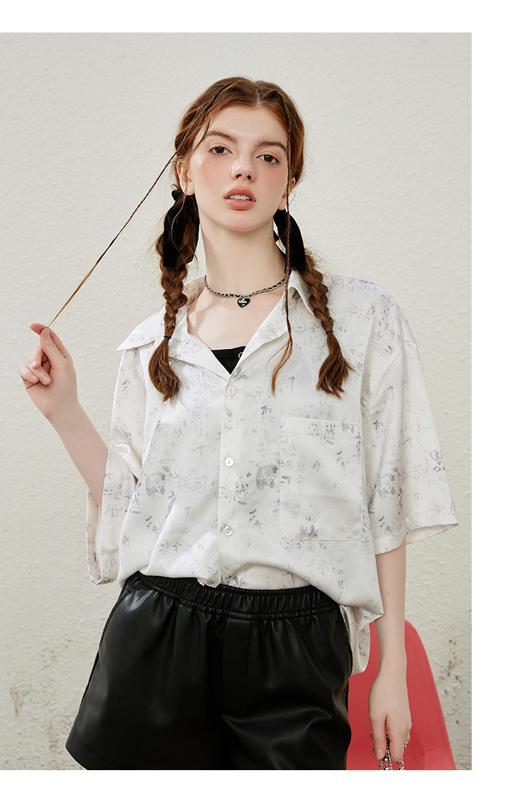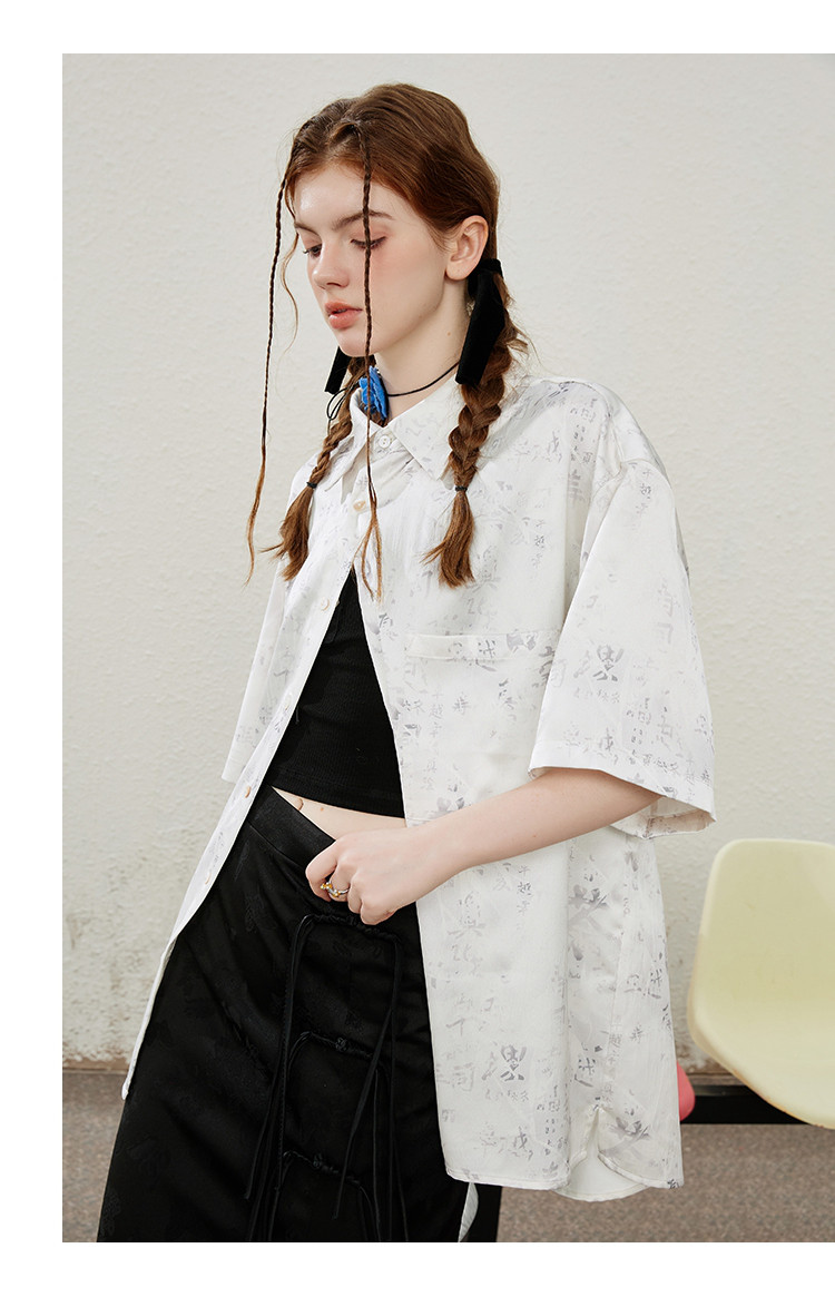 商品名称:国风设计印花宽松减龄休闲女式衬衫夏季小众气质半袖上衣 009501
