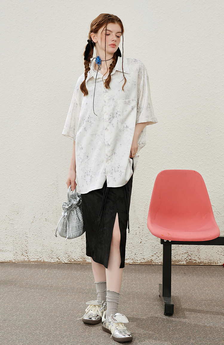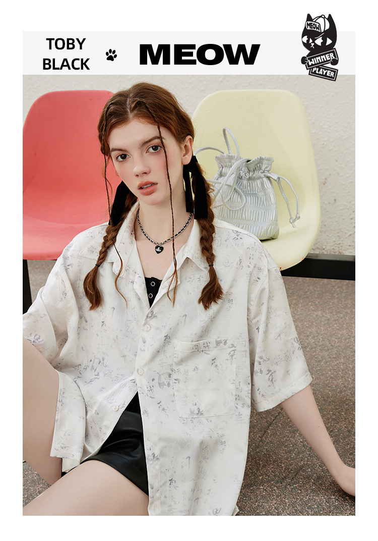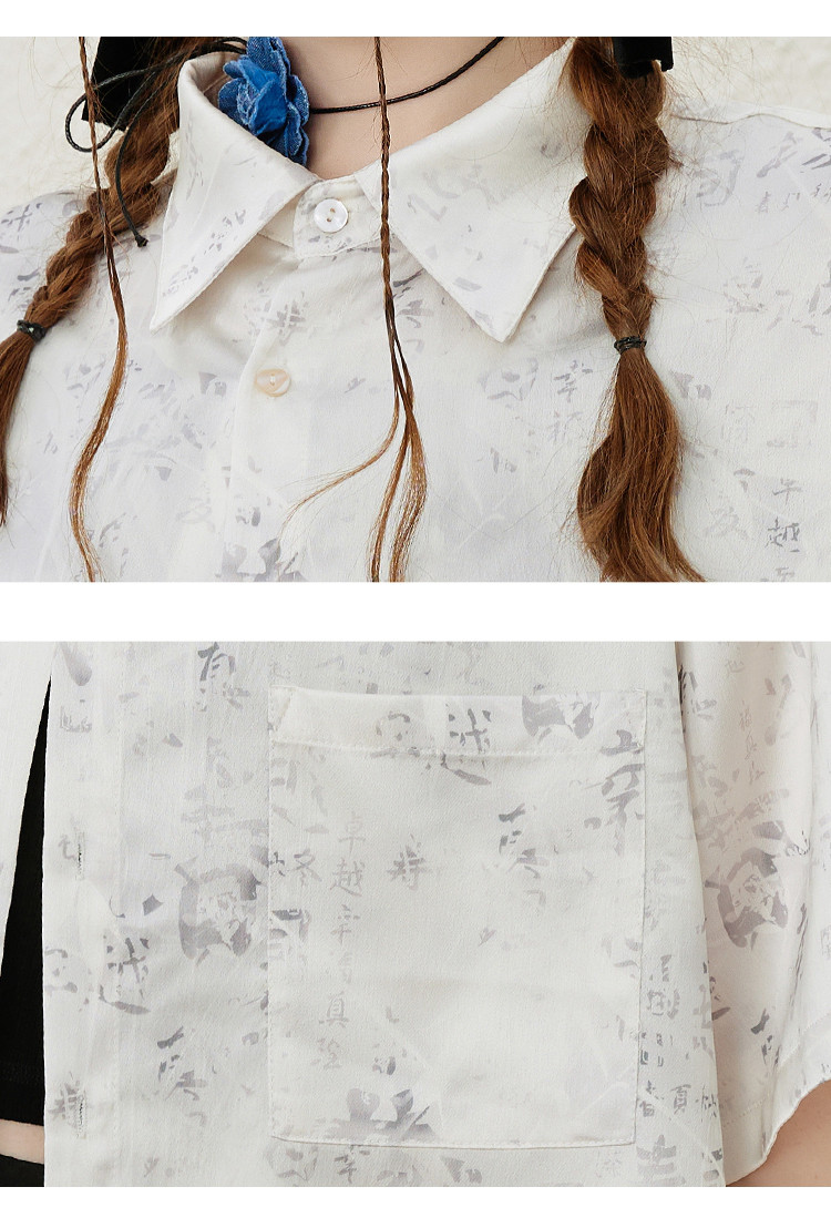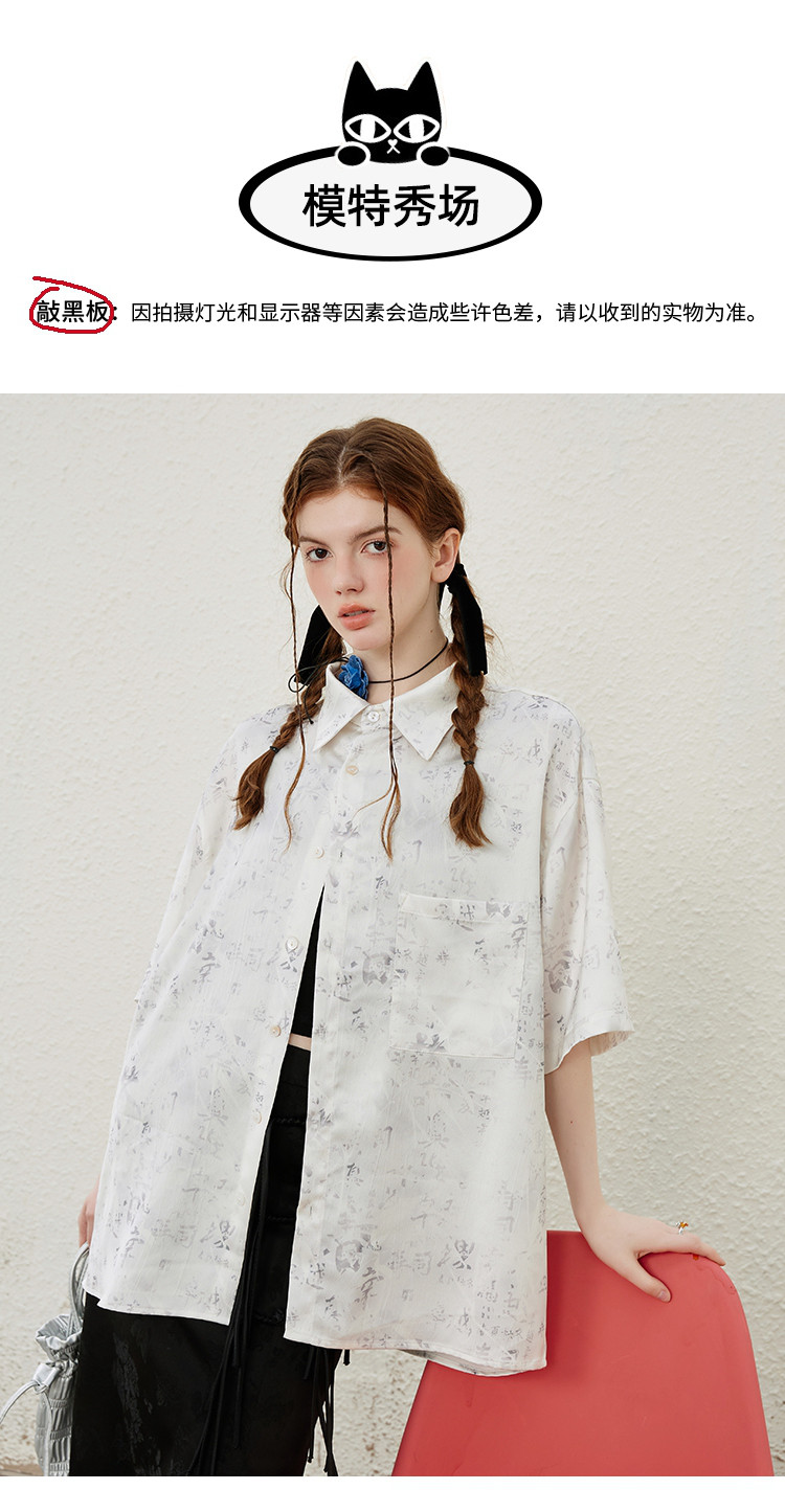 商品名称:国风设计印花宽松减龄休闲女式衬衫夏季小众气质半袖上衣 009501
