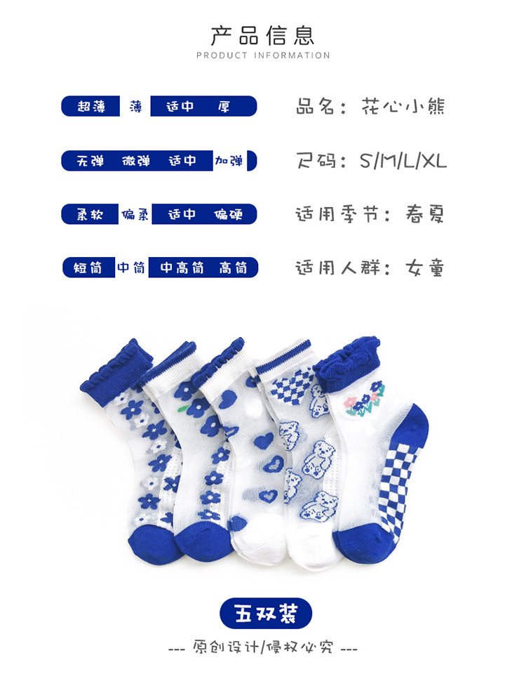 商品名称:5双装儿童袜子春秋水晶丝袜女童袜公主宝宝超薄透气袜子 650063