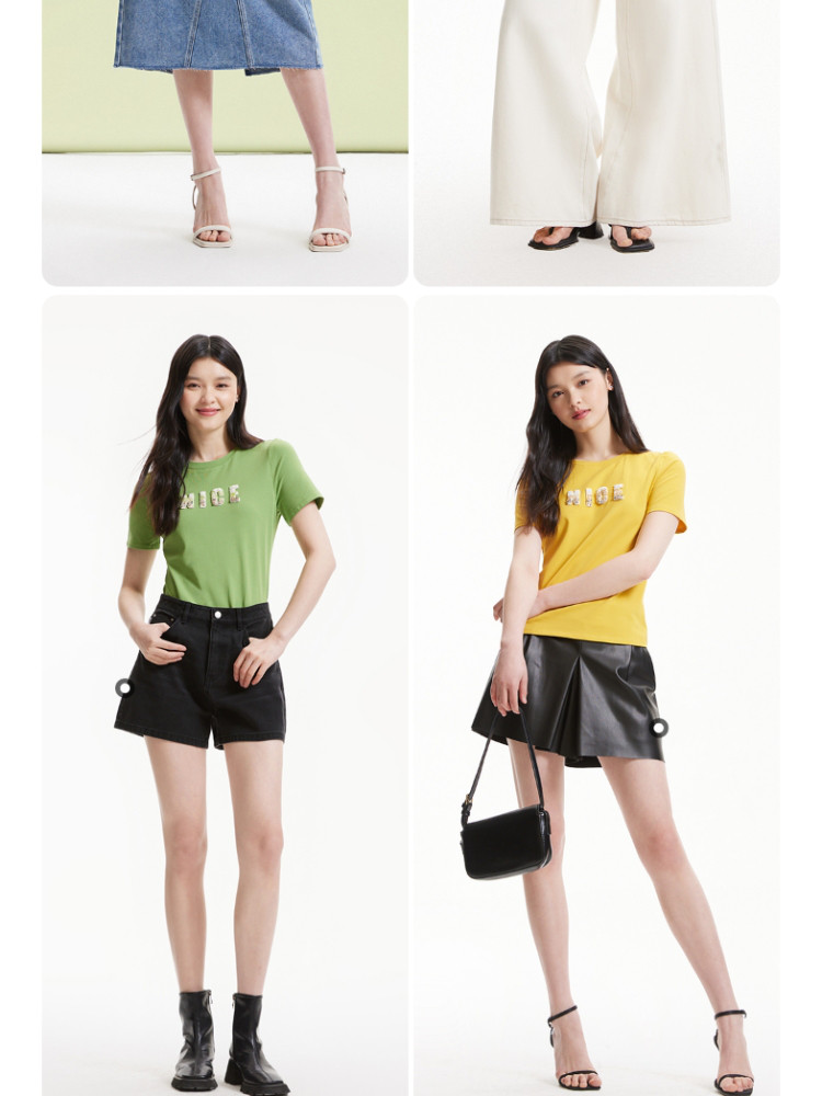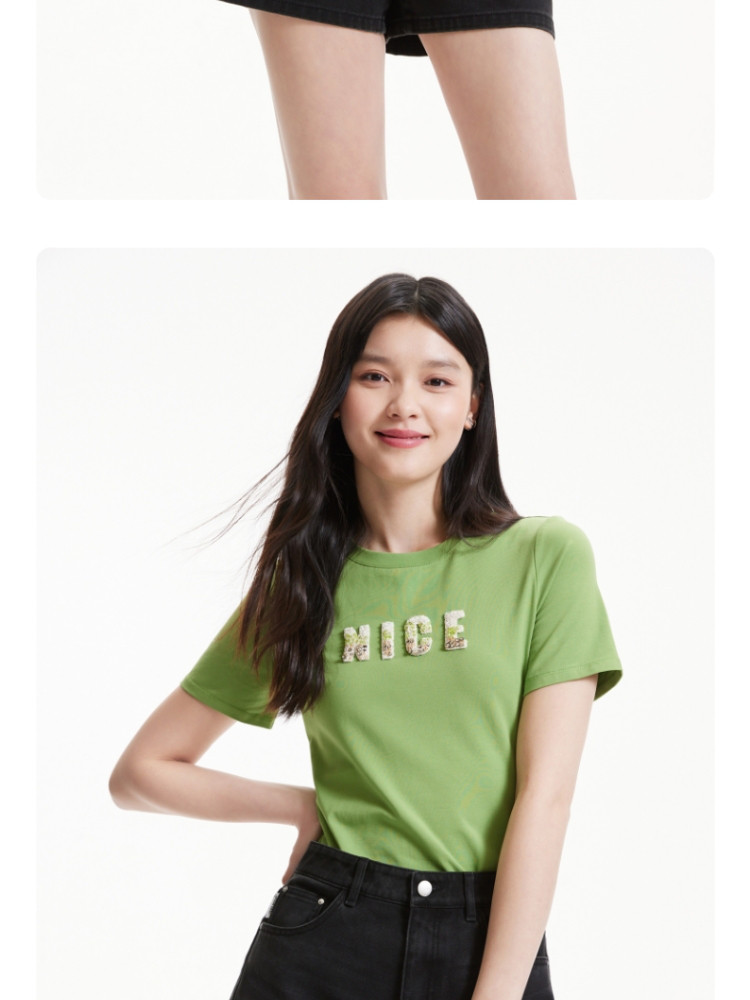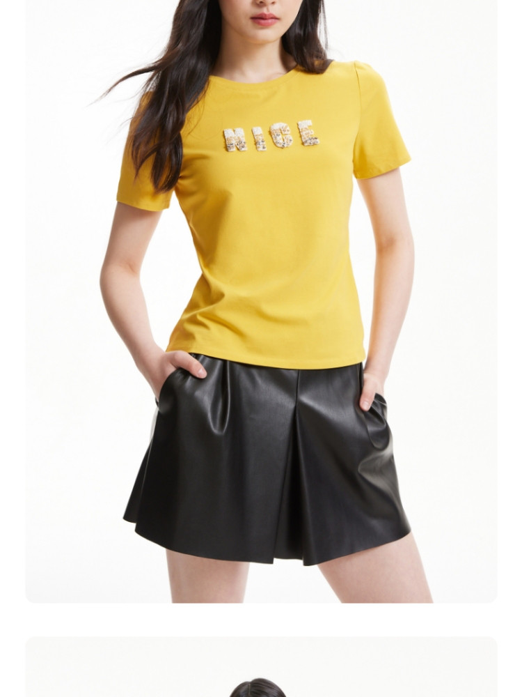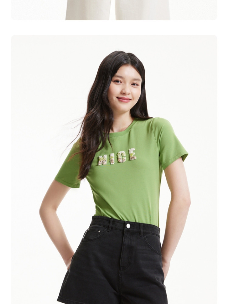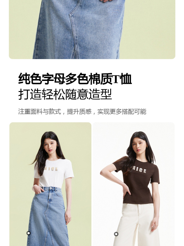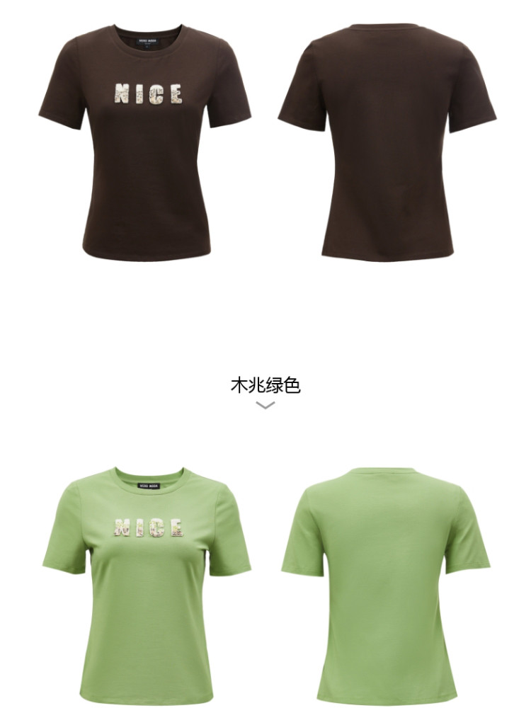 T恤女休闲百搭时尚纯色字母多色棉质 093585