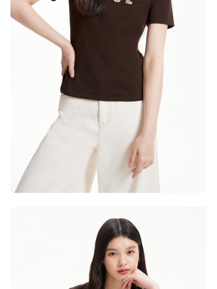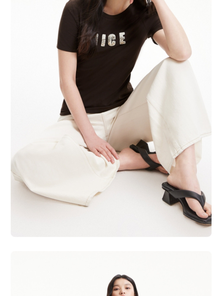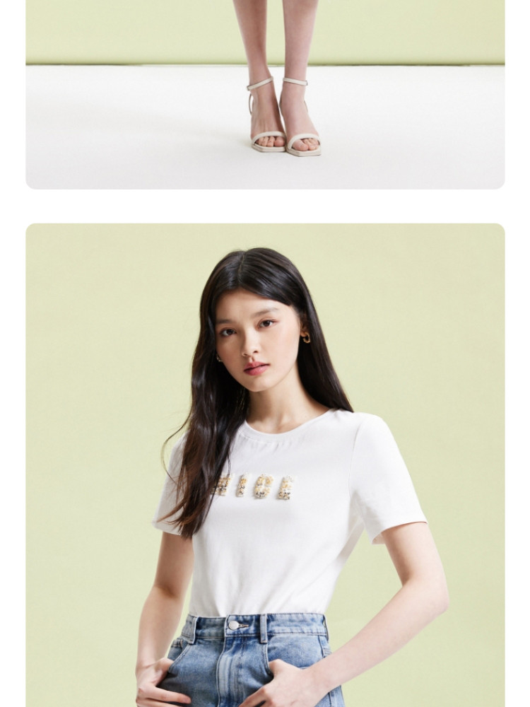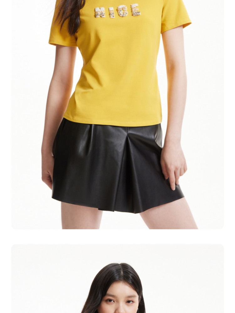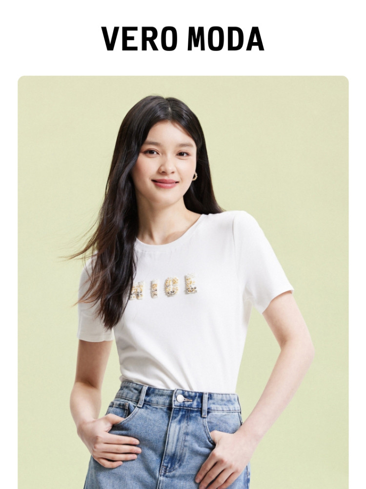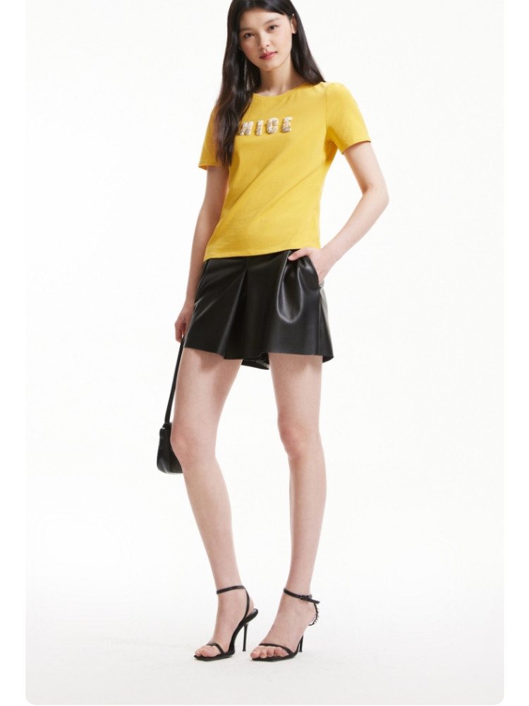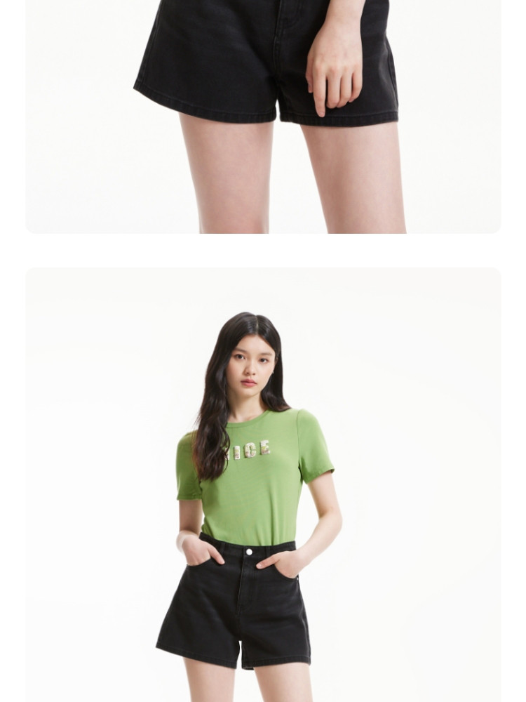 T恤女休闲百搭时尚纯色字母多色棉质 093585