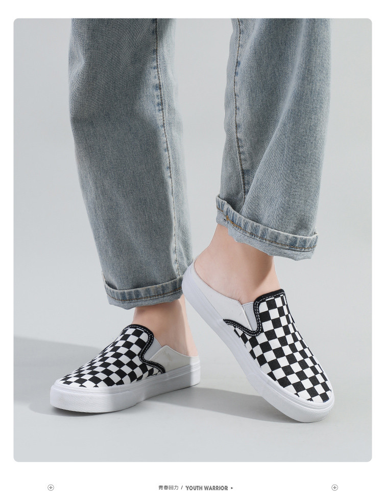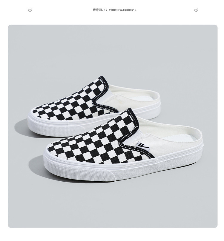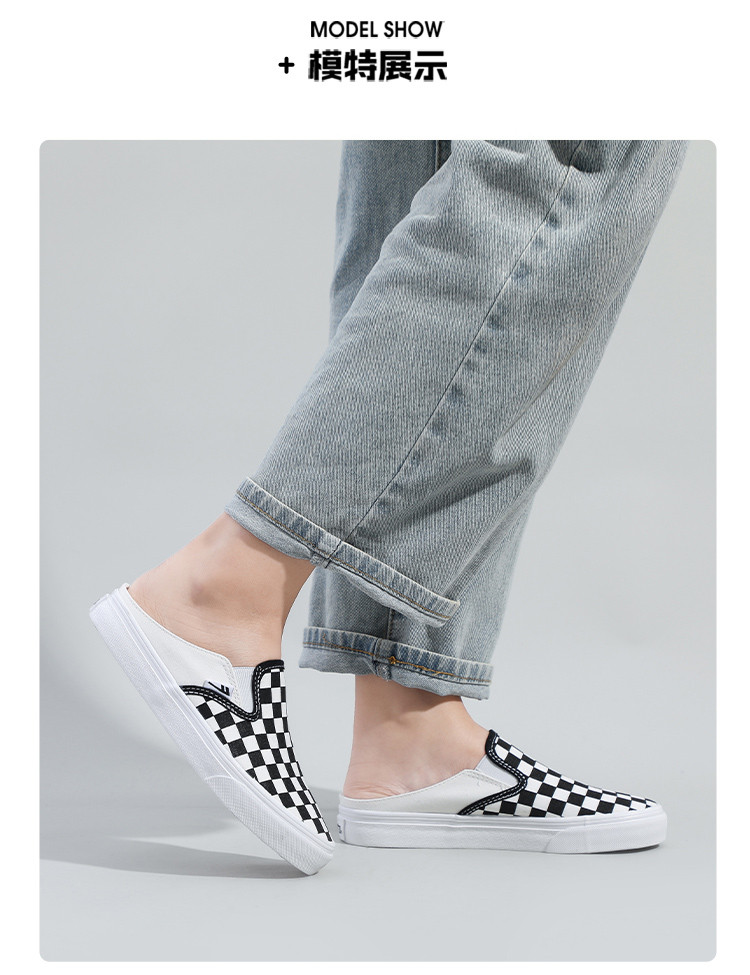 【情侣帆布鞋】25夏季新款女鞋半拖鞋女一脚蹬格纹帆布鞋小白鞋 802644
