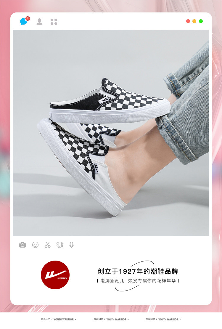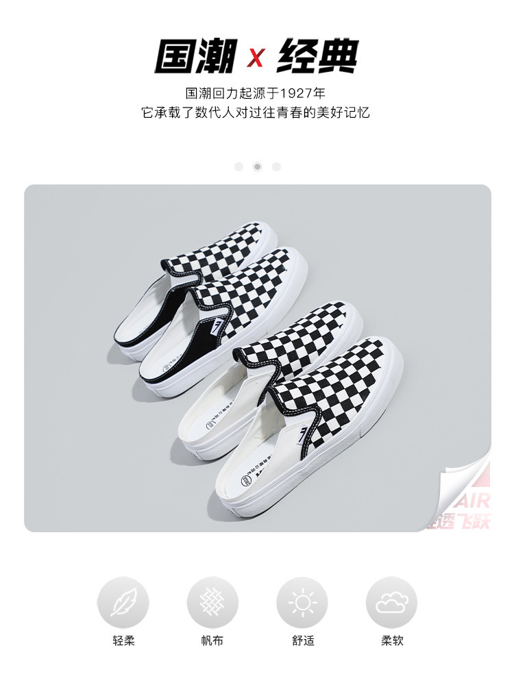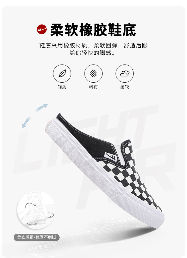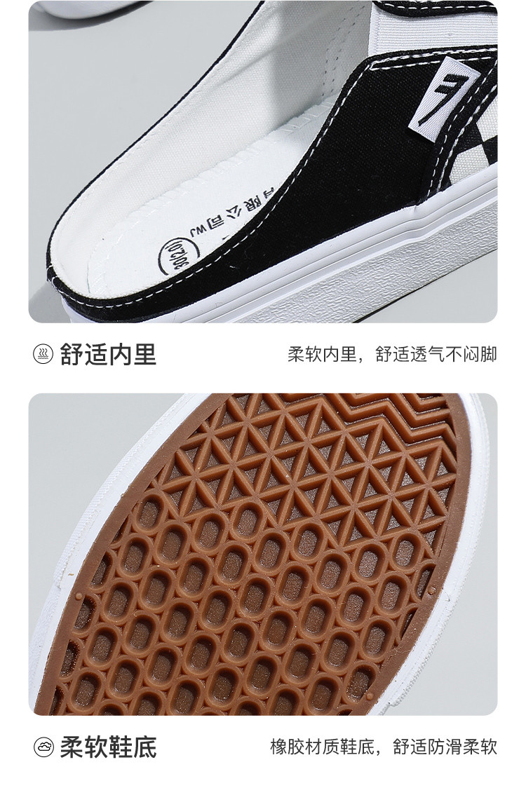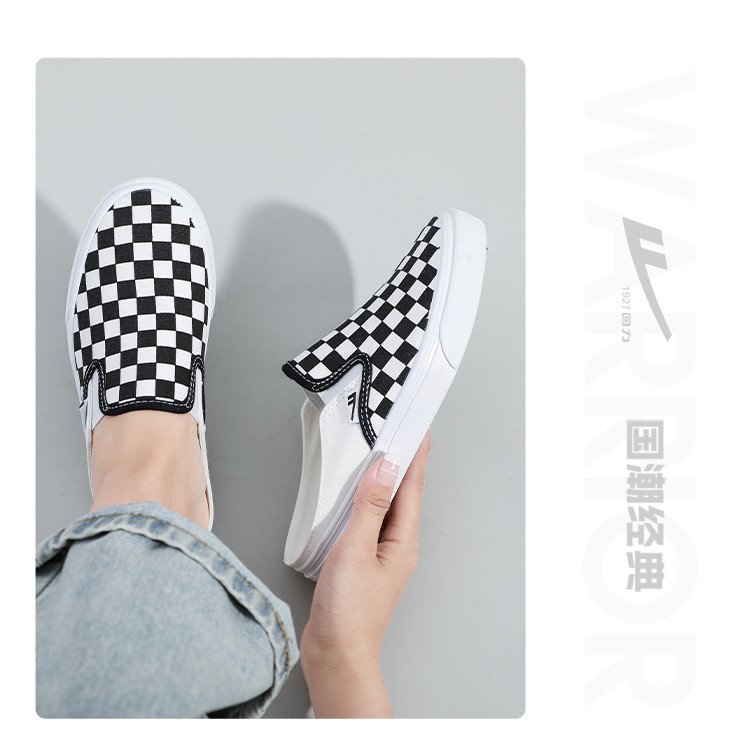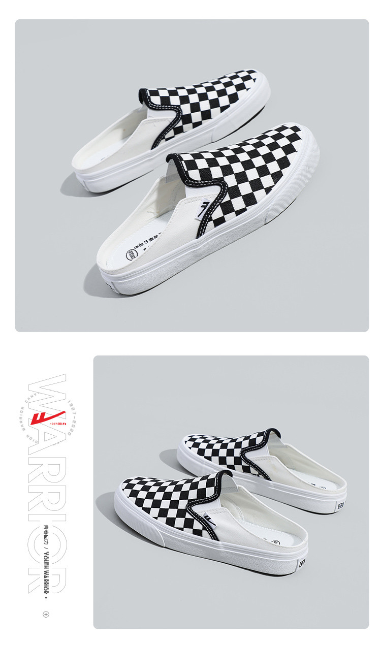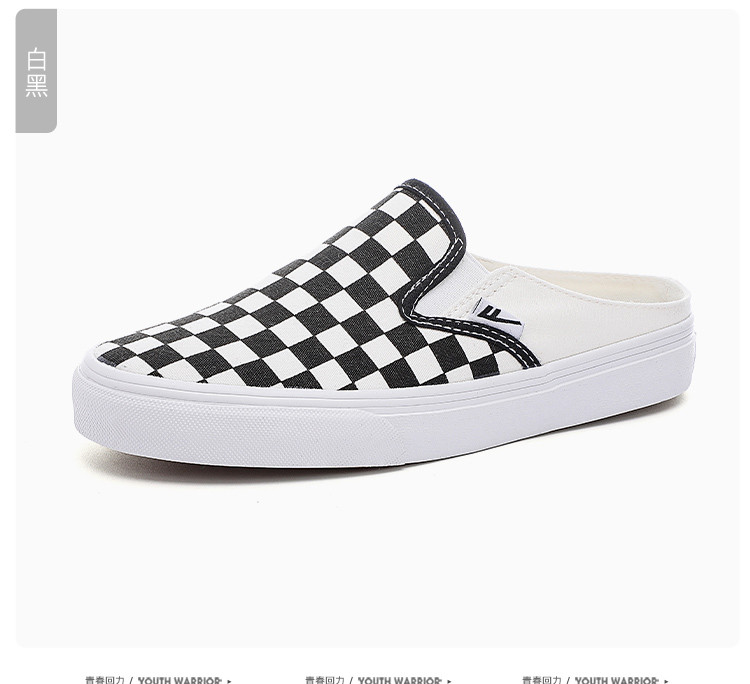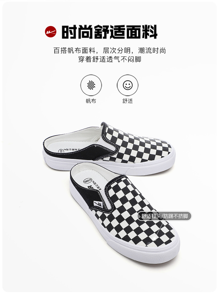 商品名称:【情侣帆布鞋】25夏季新款女鞋半拖鞋女一脚蹬格纹帆布鞋小白鞋 802644