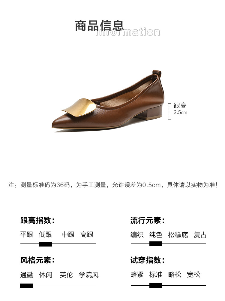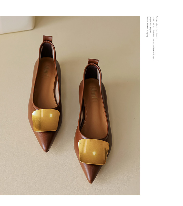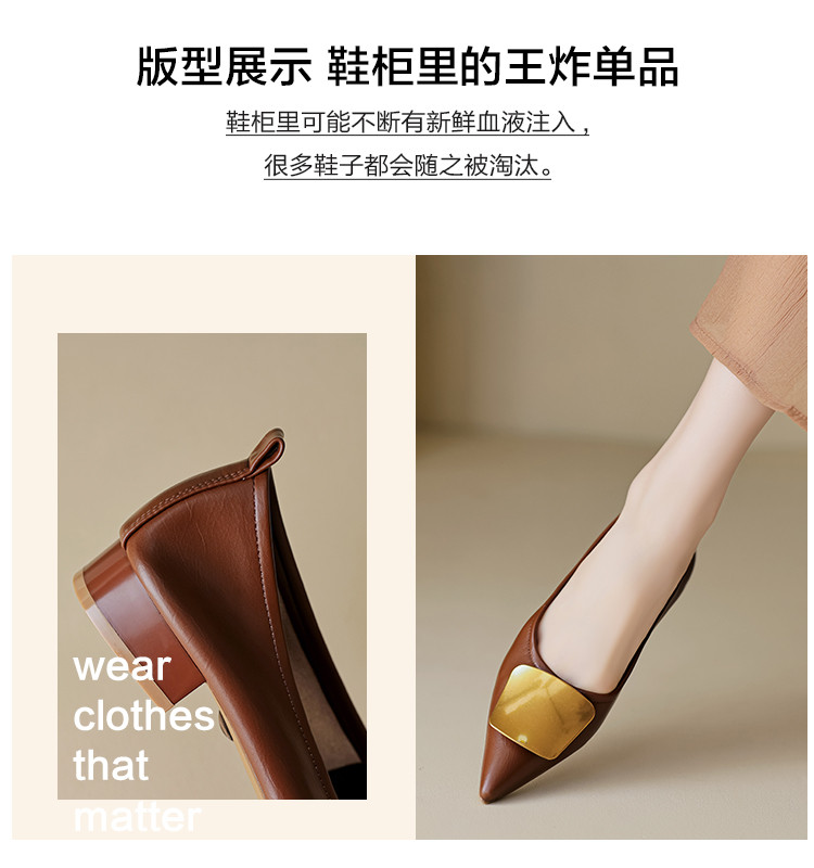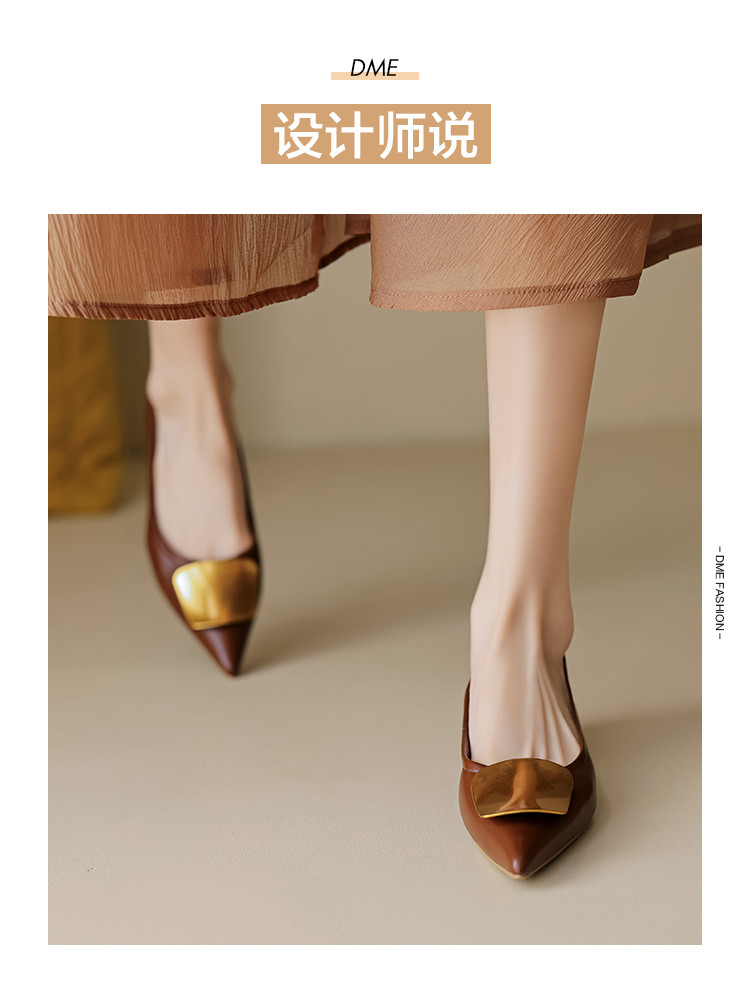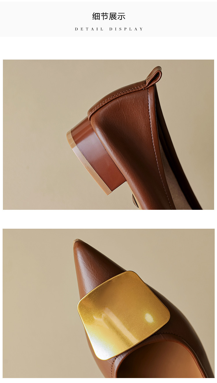 商品名称:春季时尚简约百搭纯色金属方扣尖头方跟女单鞋 956097