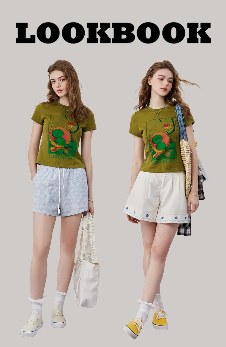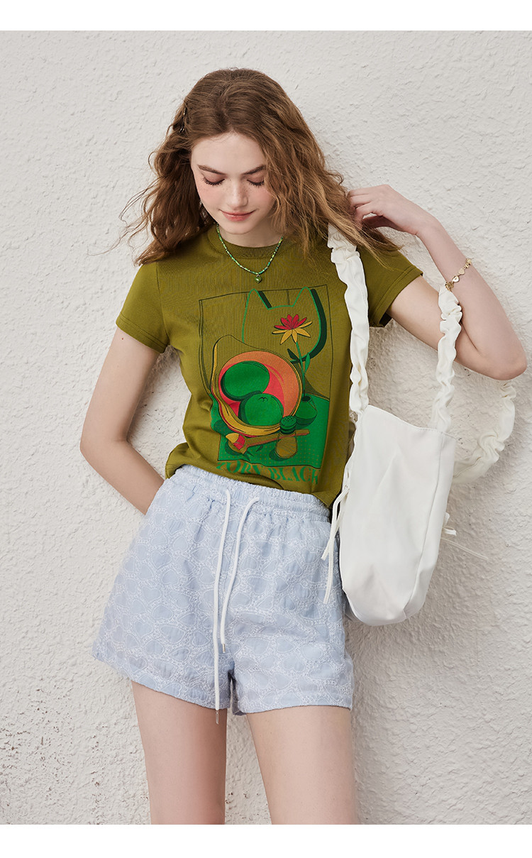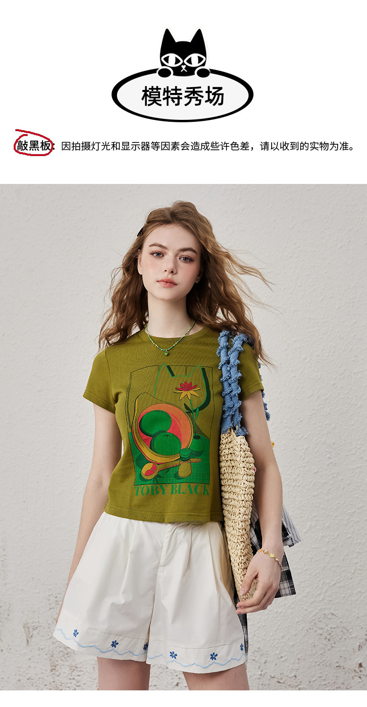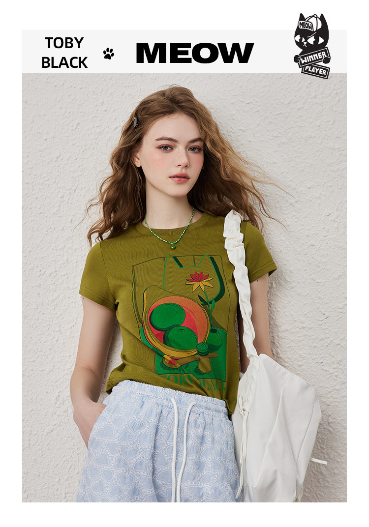 商品名称:时尚休闲显瘦圆领女式T恤夏季个性图案印花百搭短袖上衣 855197