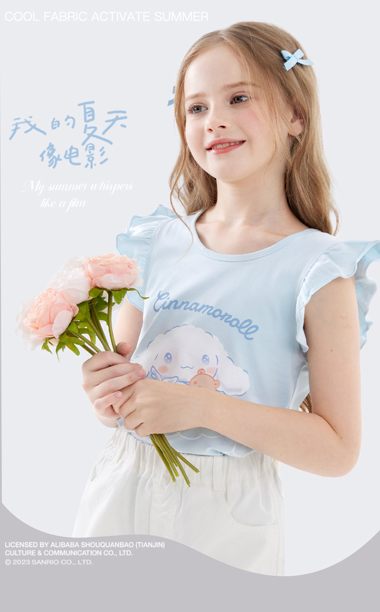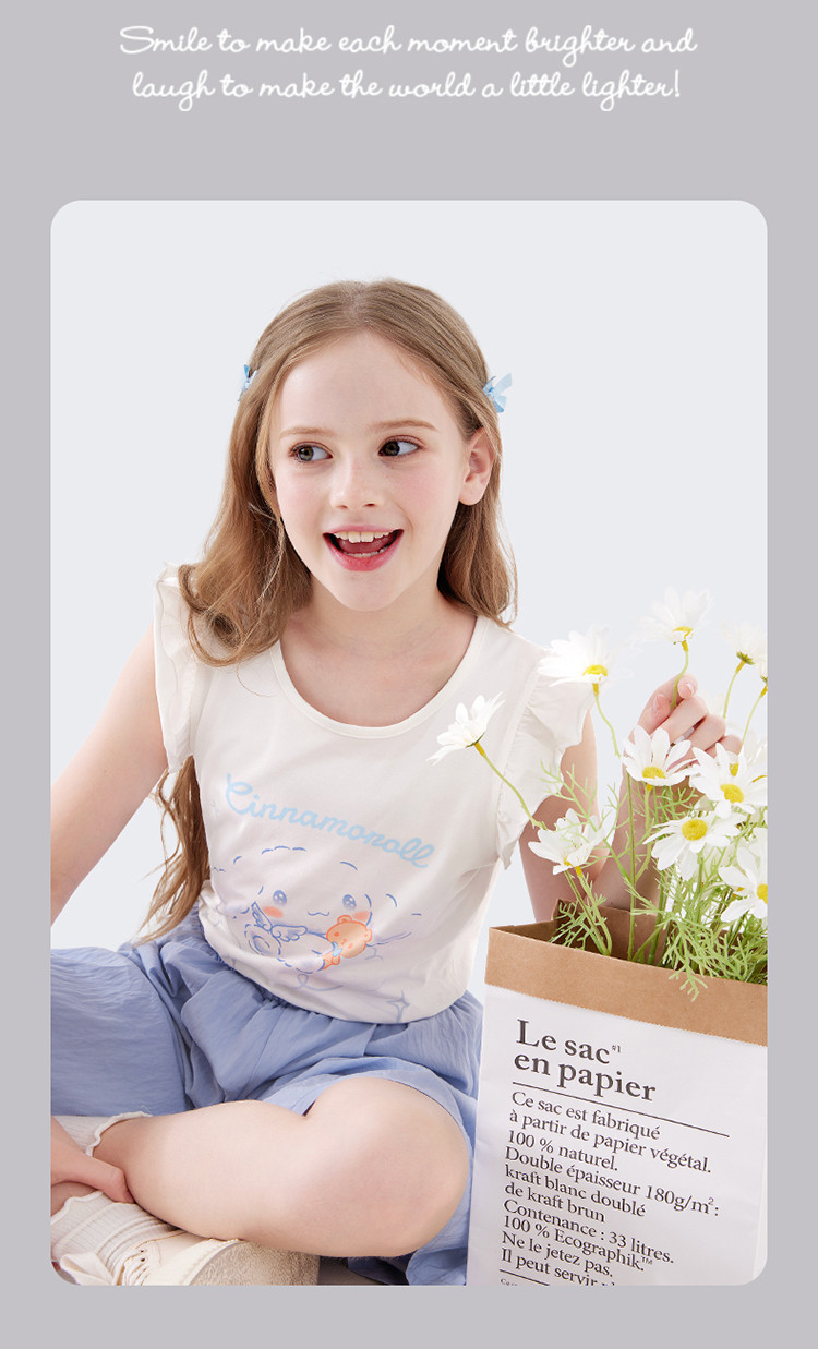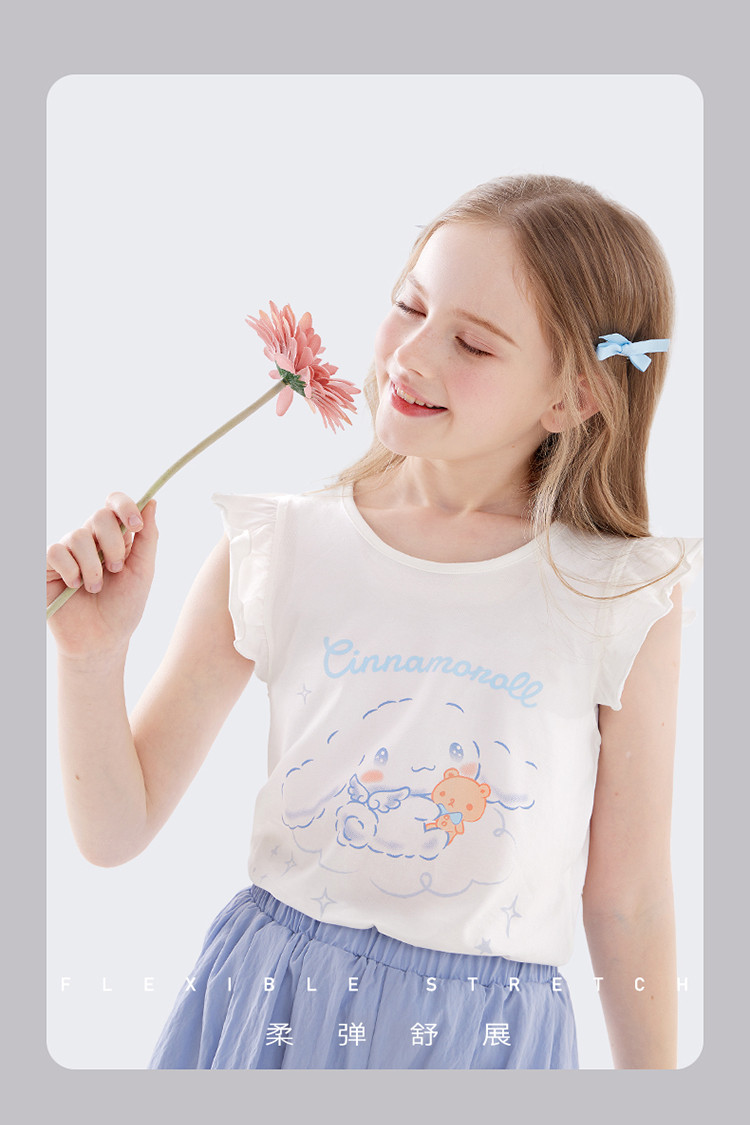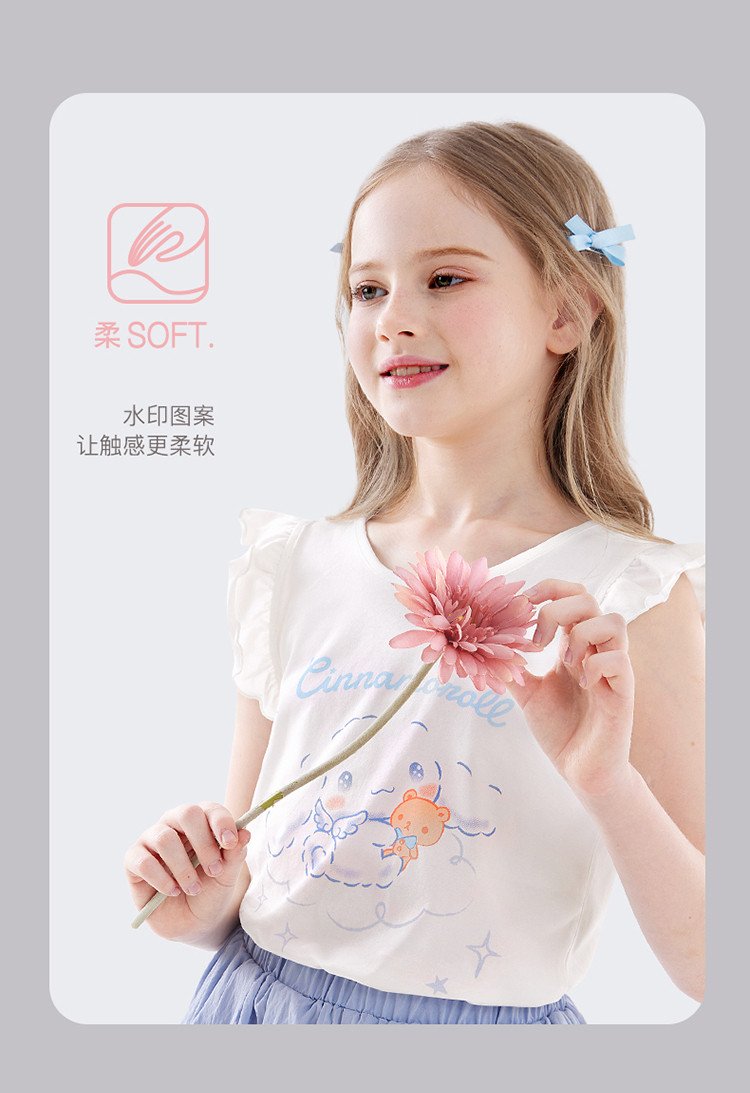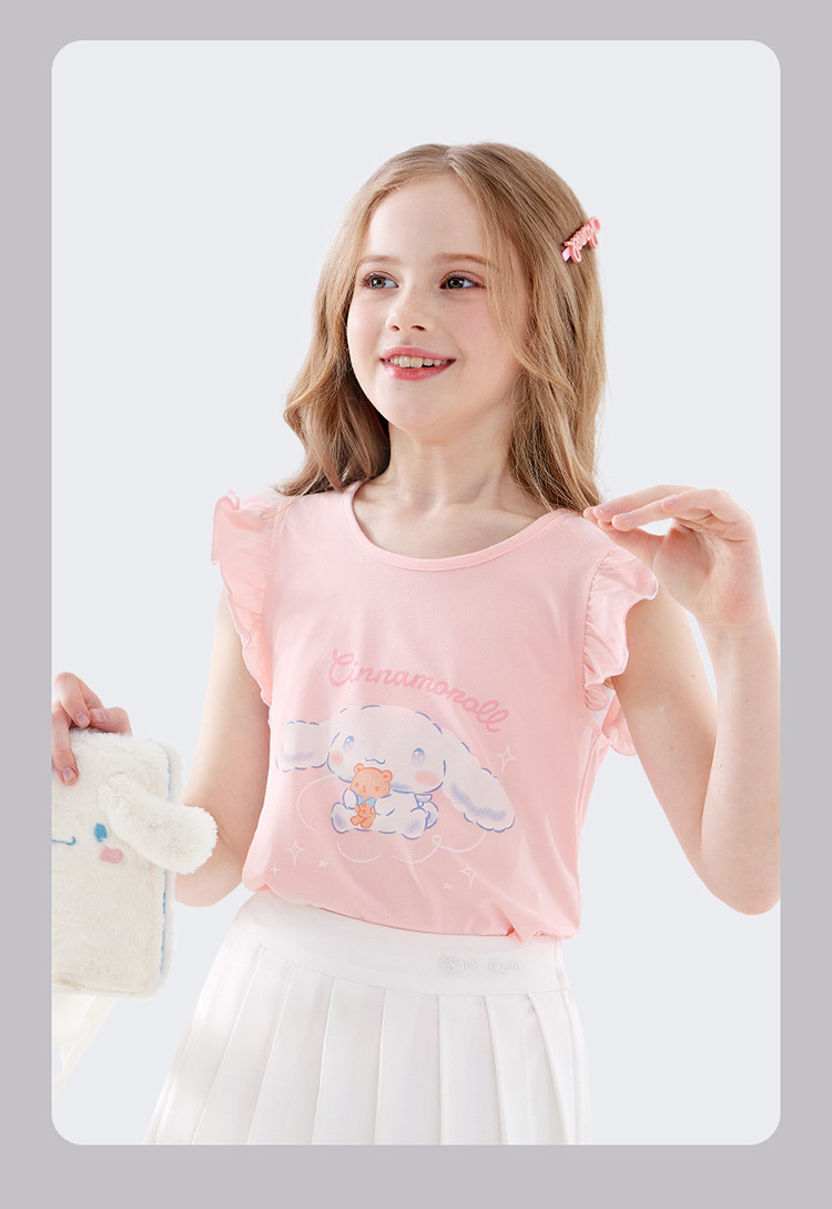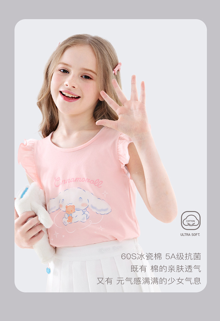 【5A级抗菌】玉桂狗联名女童背心T恤2025夏儿童套头打底衫 042433