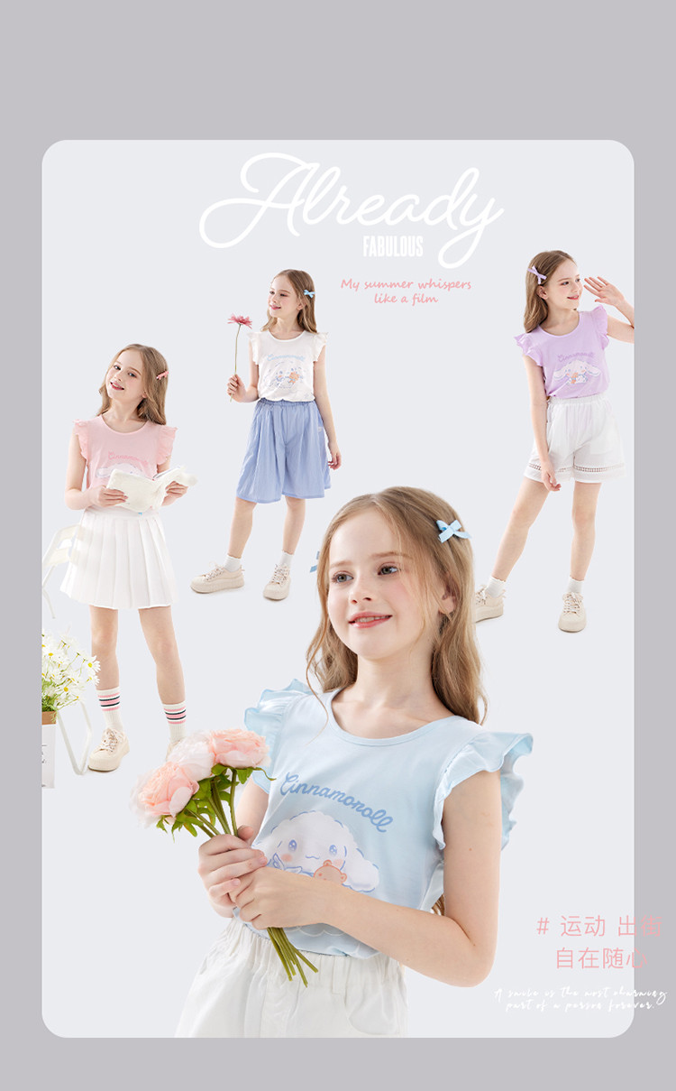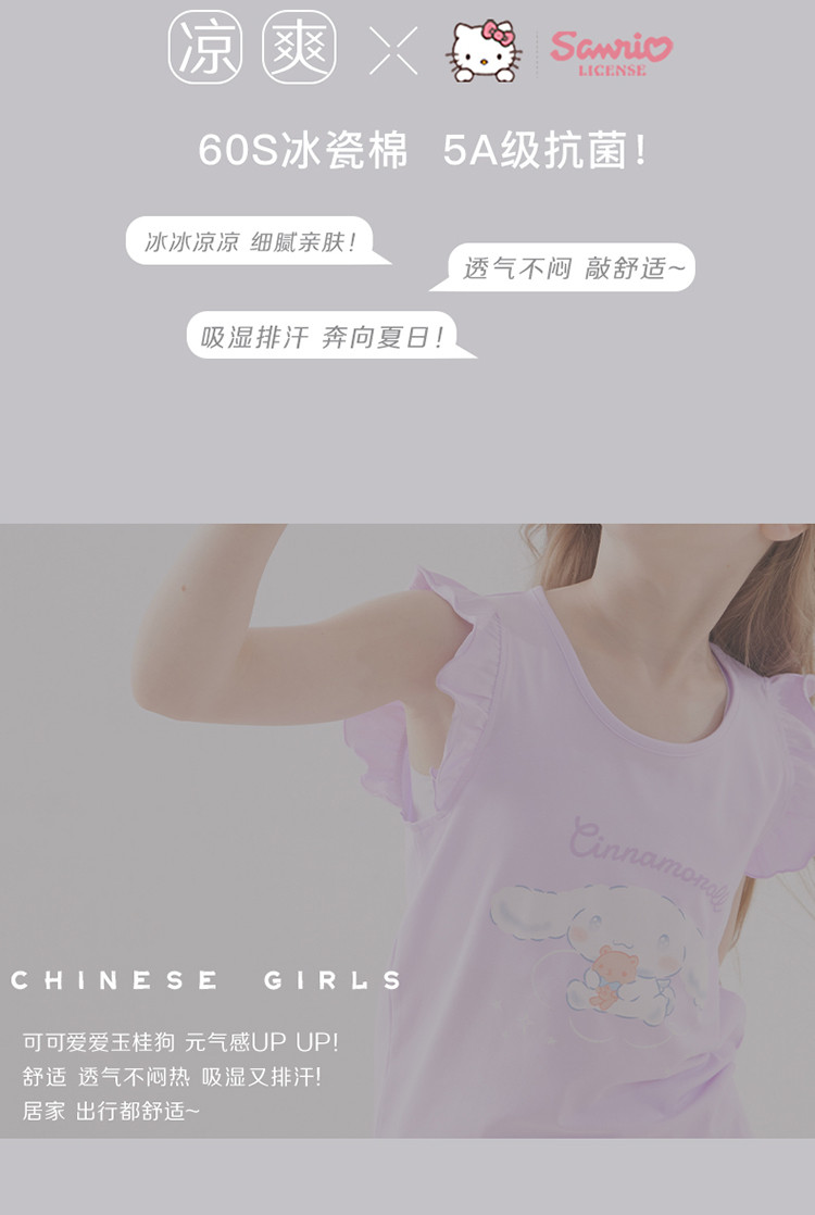 商品名称:【5A级抗菌】玉桂狗联名女童背心T恤2025夏儿童套头打底衫 042433