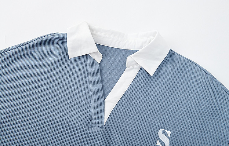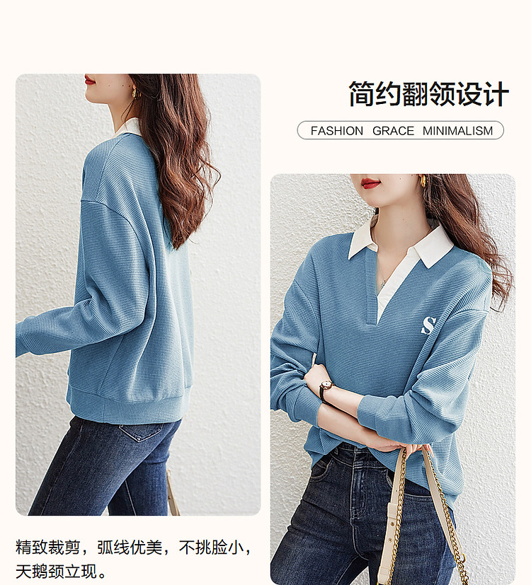 商品名称:【华夫格拼接卫衣】春季学院风字母刺绣翻领宽松藏肉休闲女式上衣 375745