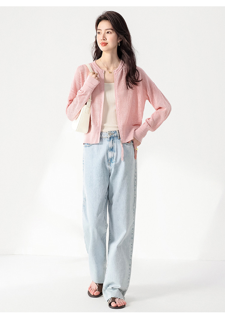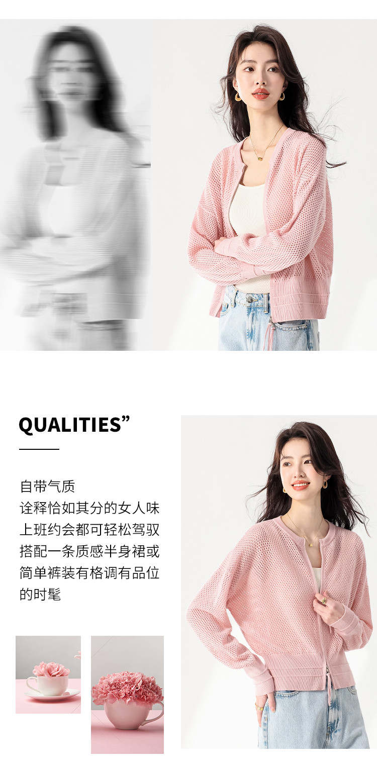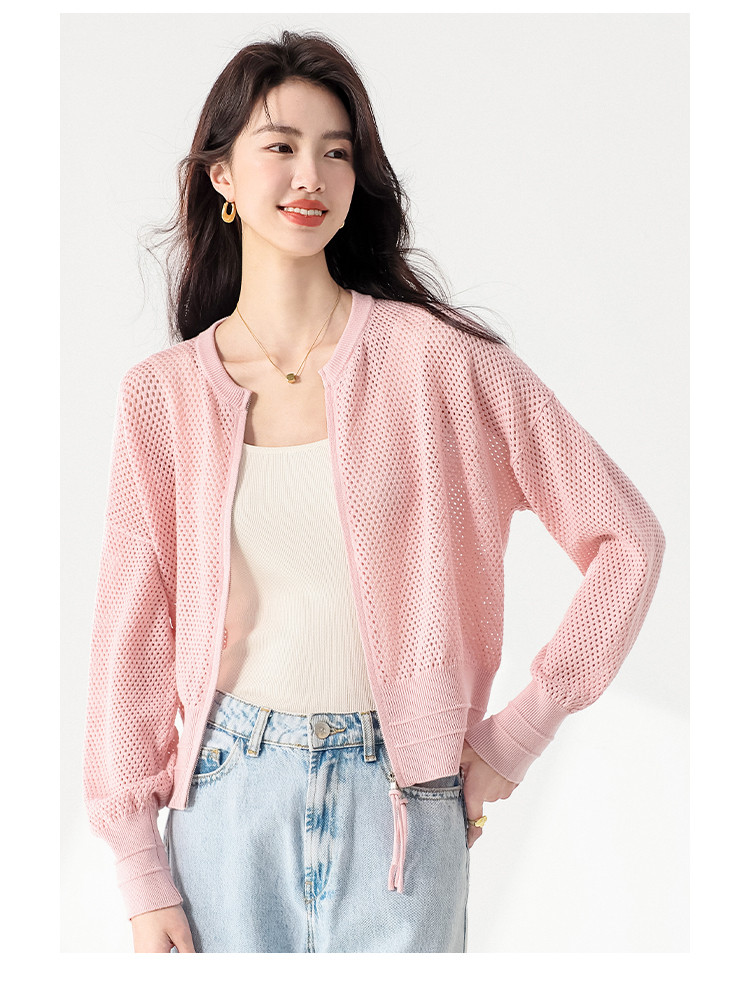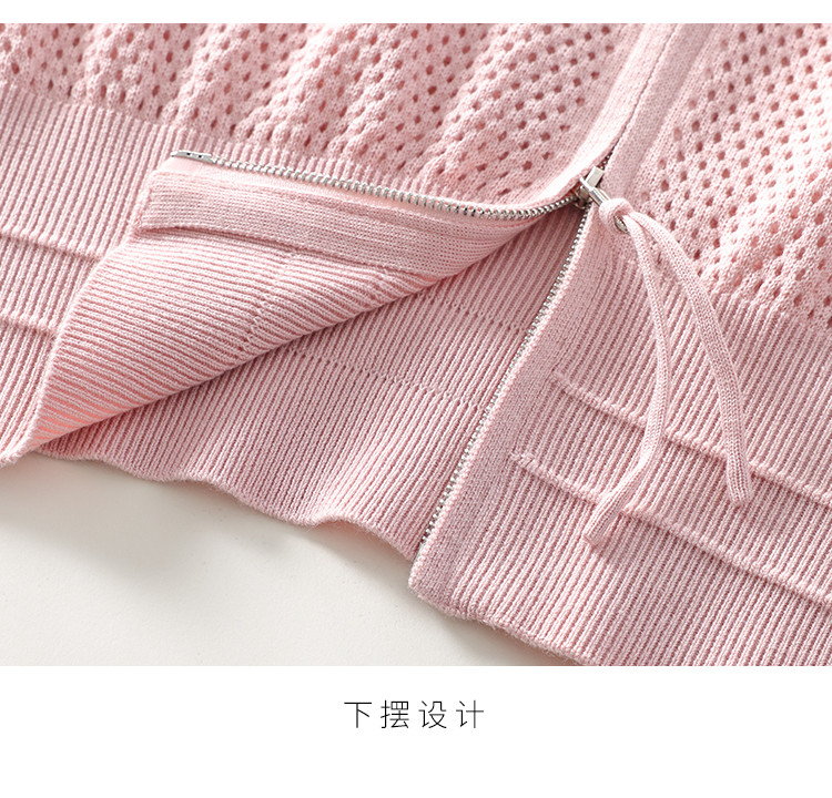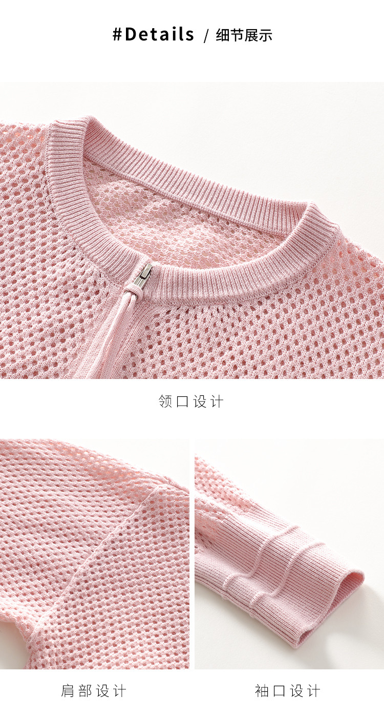 轻薄透气双拉链网眼镂空圆领羊毛针织开衫毛衣夏款外套空调衫 435859