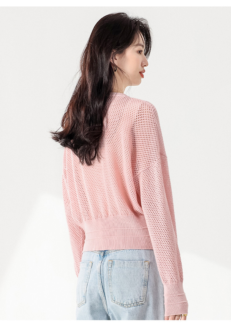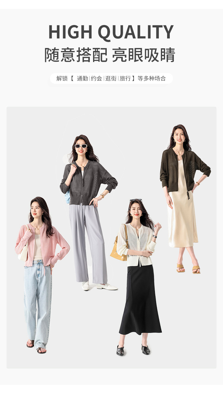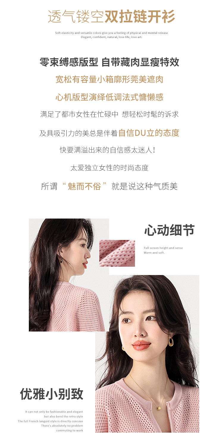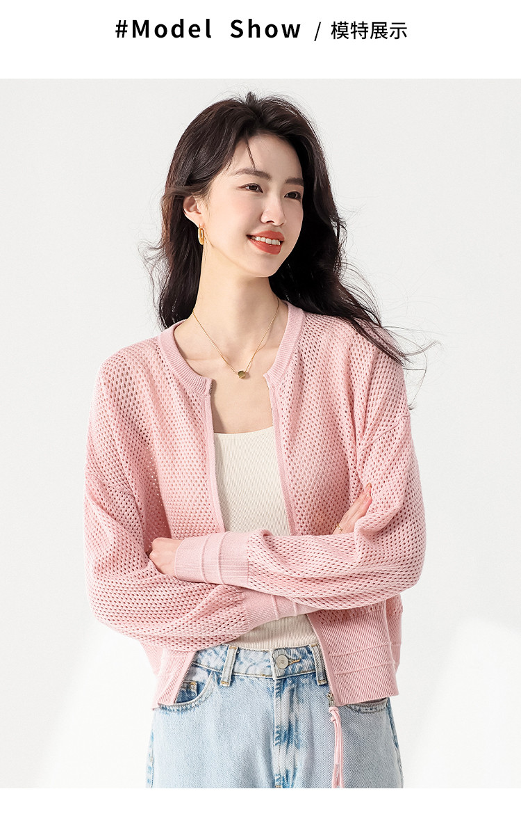 轻薄透气双拉链网眼镂空圆领羊毛针织开衫毛衣夏款外套空调衫 435859