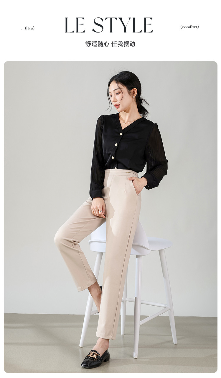 秋季女装商务通勤西装裤高腰气质显瘦纯色小个子休闲裤女 153887