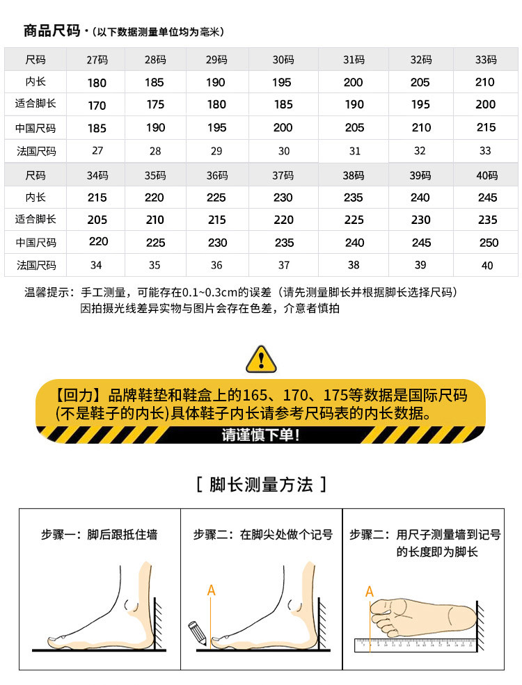 鞋内长(mm)