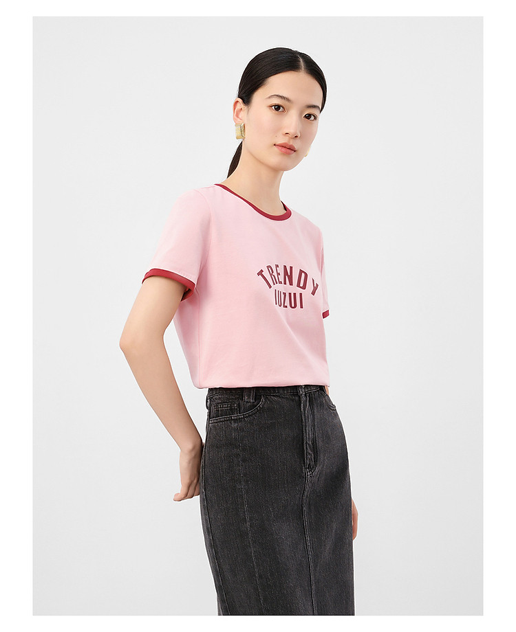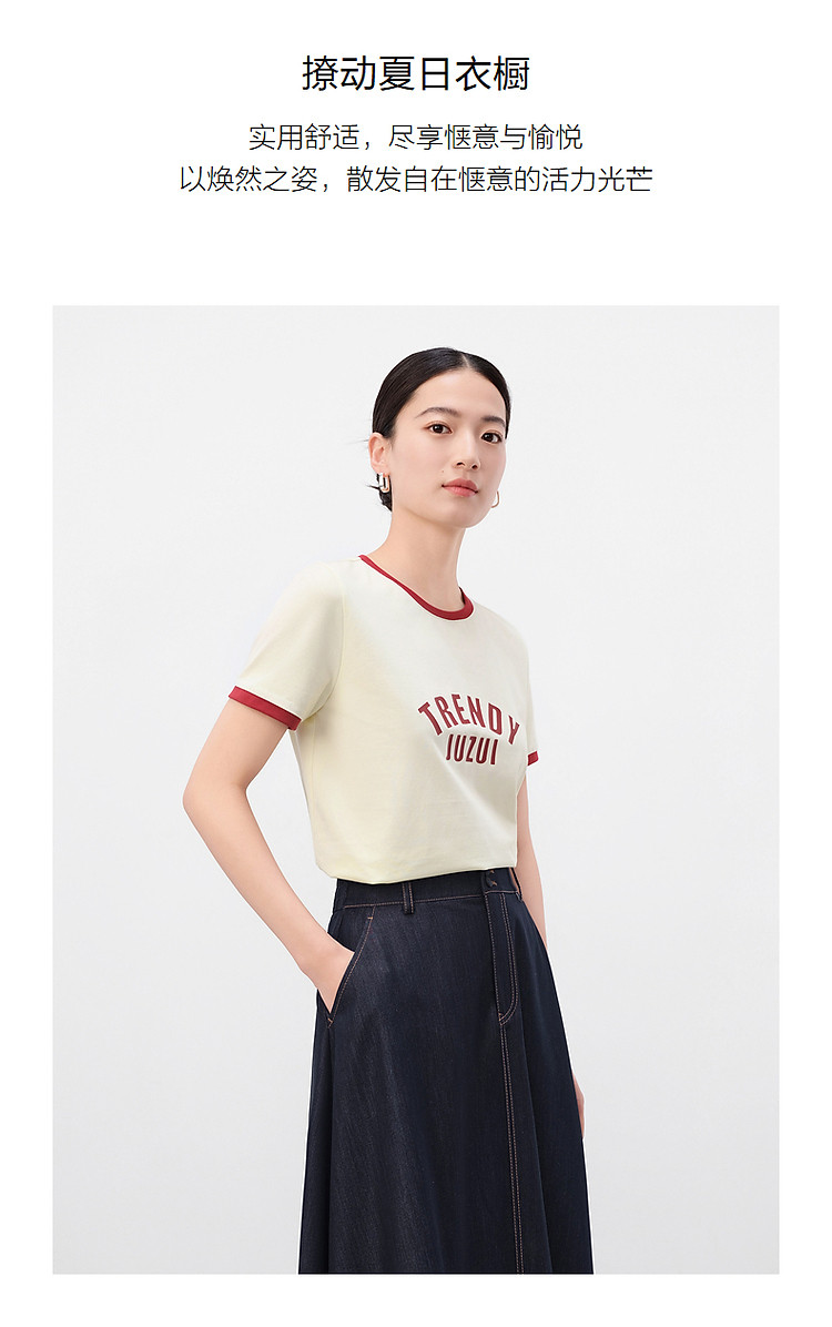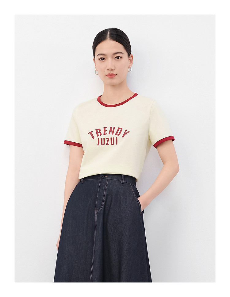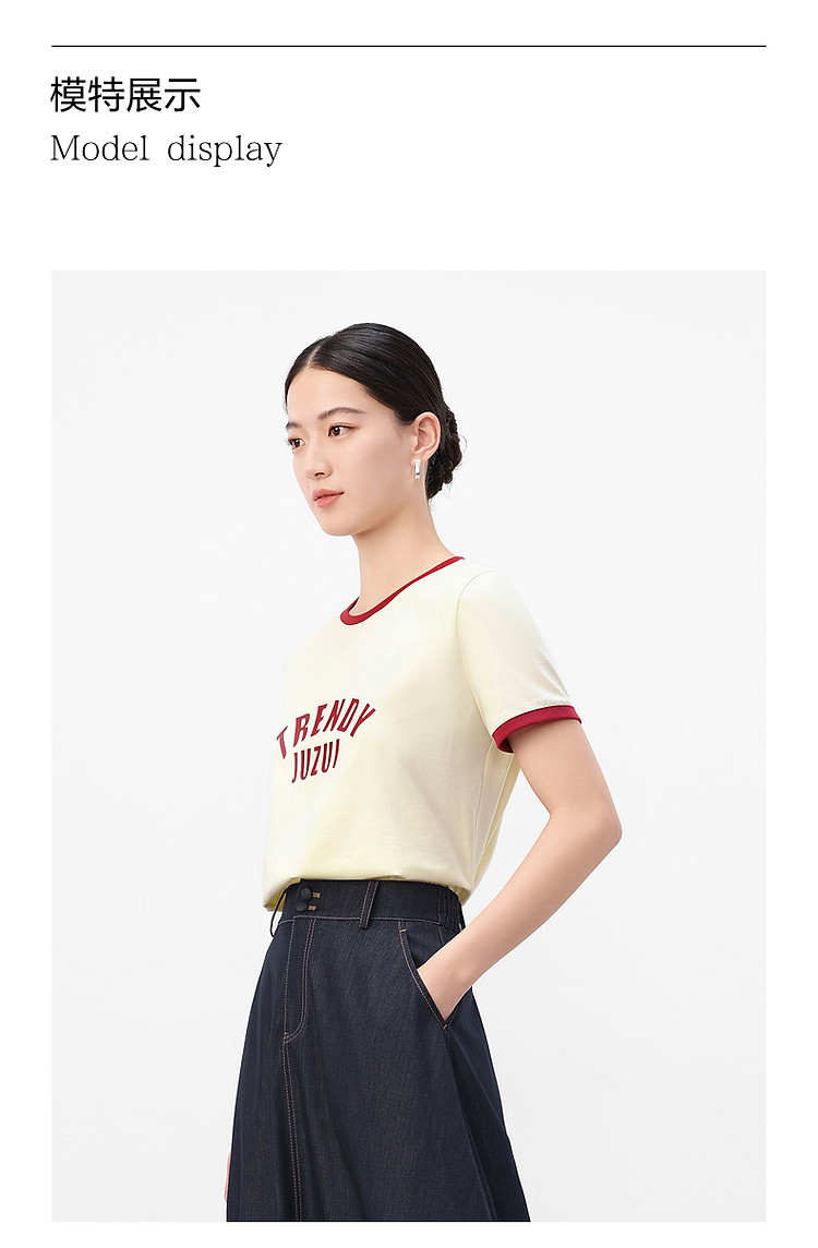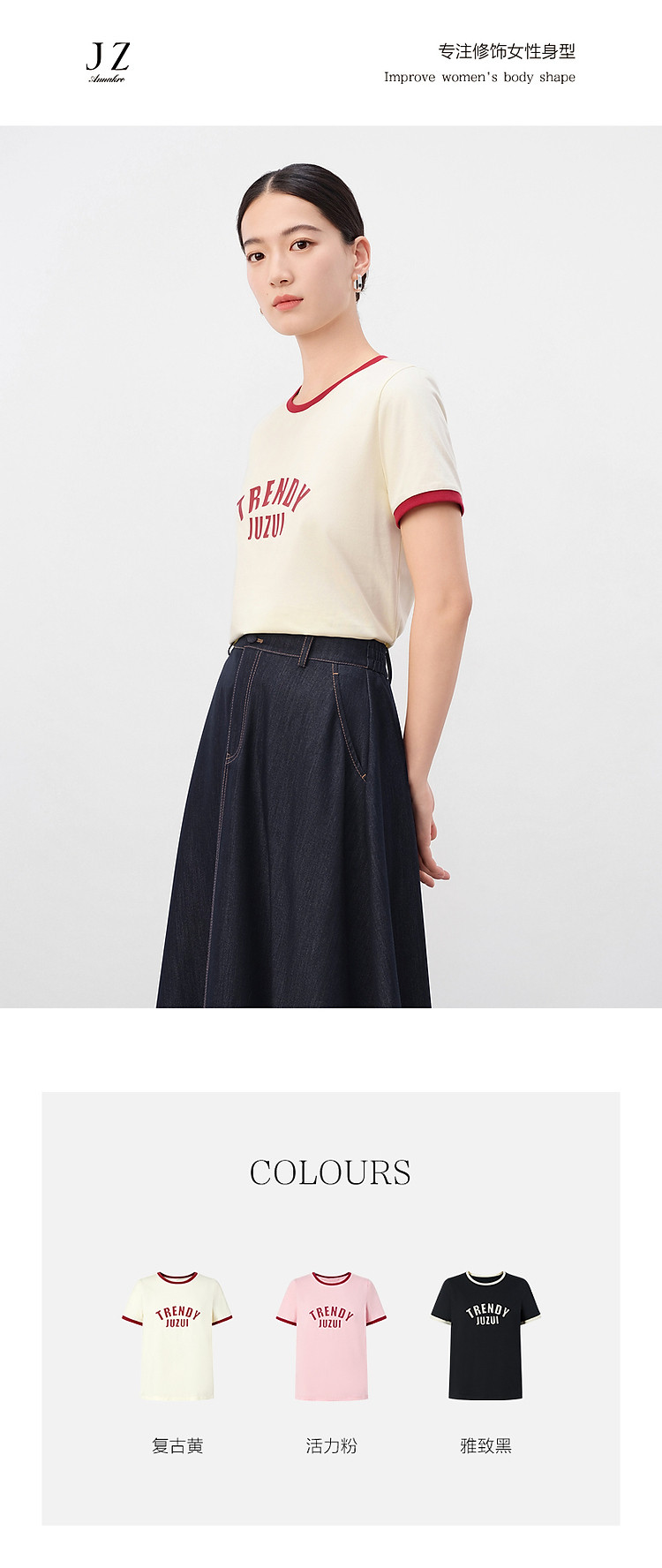 商品名称:【清爽沁凉】玖姿旗下安娜蔻系列活力撞色字母印花T恤女夏季 913868