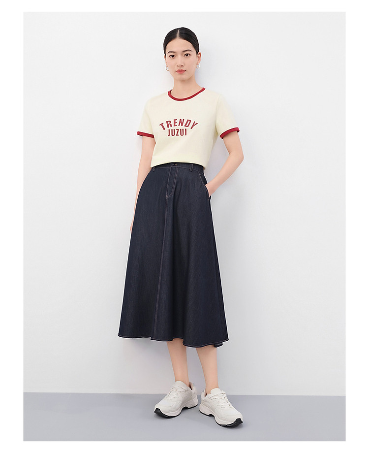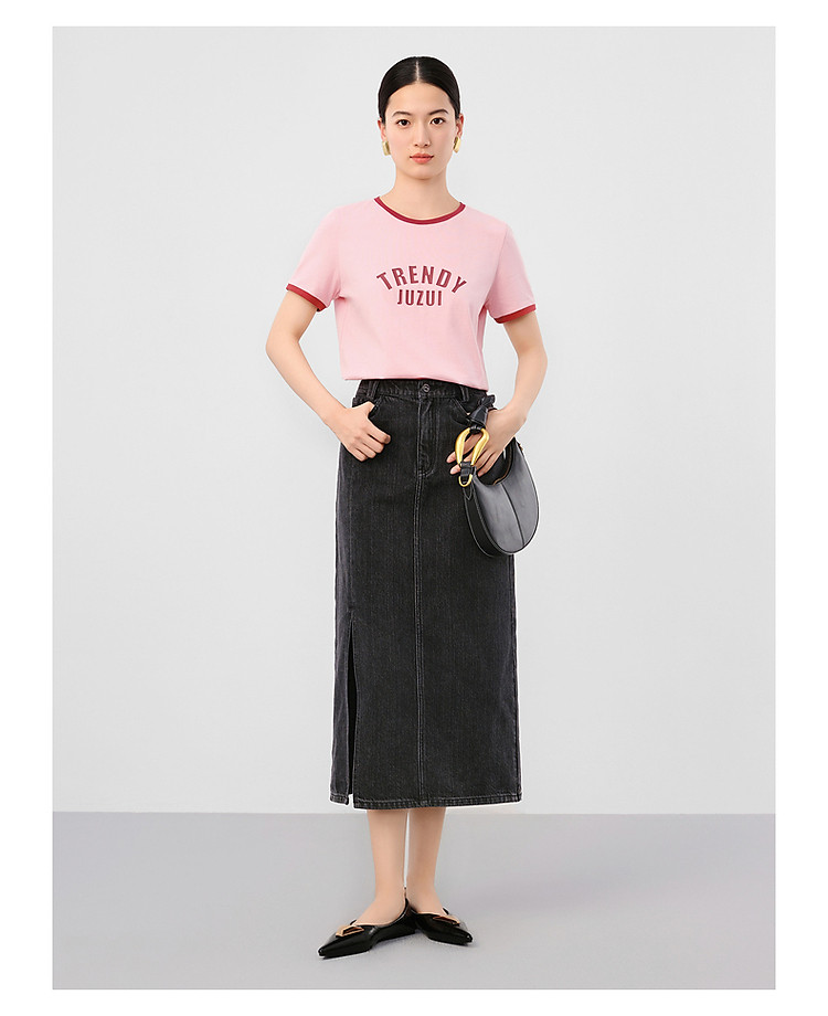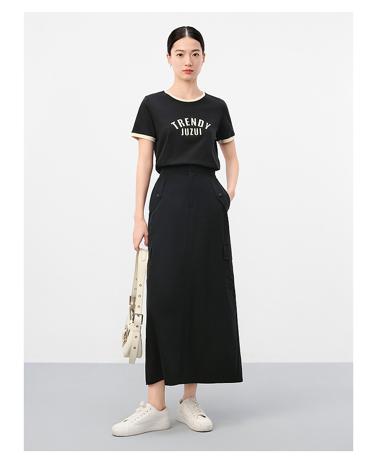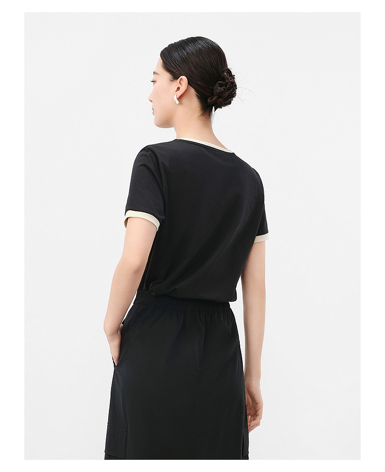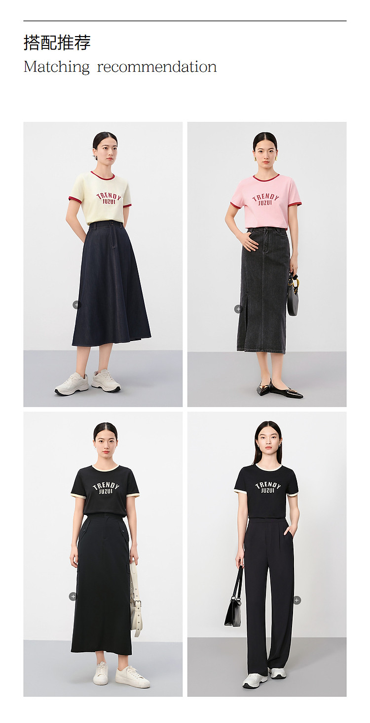 商品名称:【清爽沁凉】玖姿旗下安娜蔻系列活力撞色字母印花T恤女夏季 913868