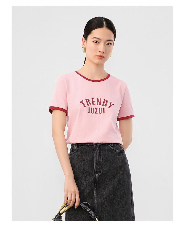 【清爽沁凉】玖姿旗下安娜蔻系列活力撞色字母印花T恤女夏季 913868