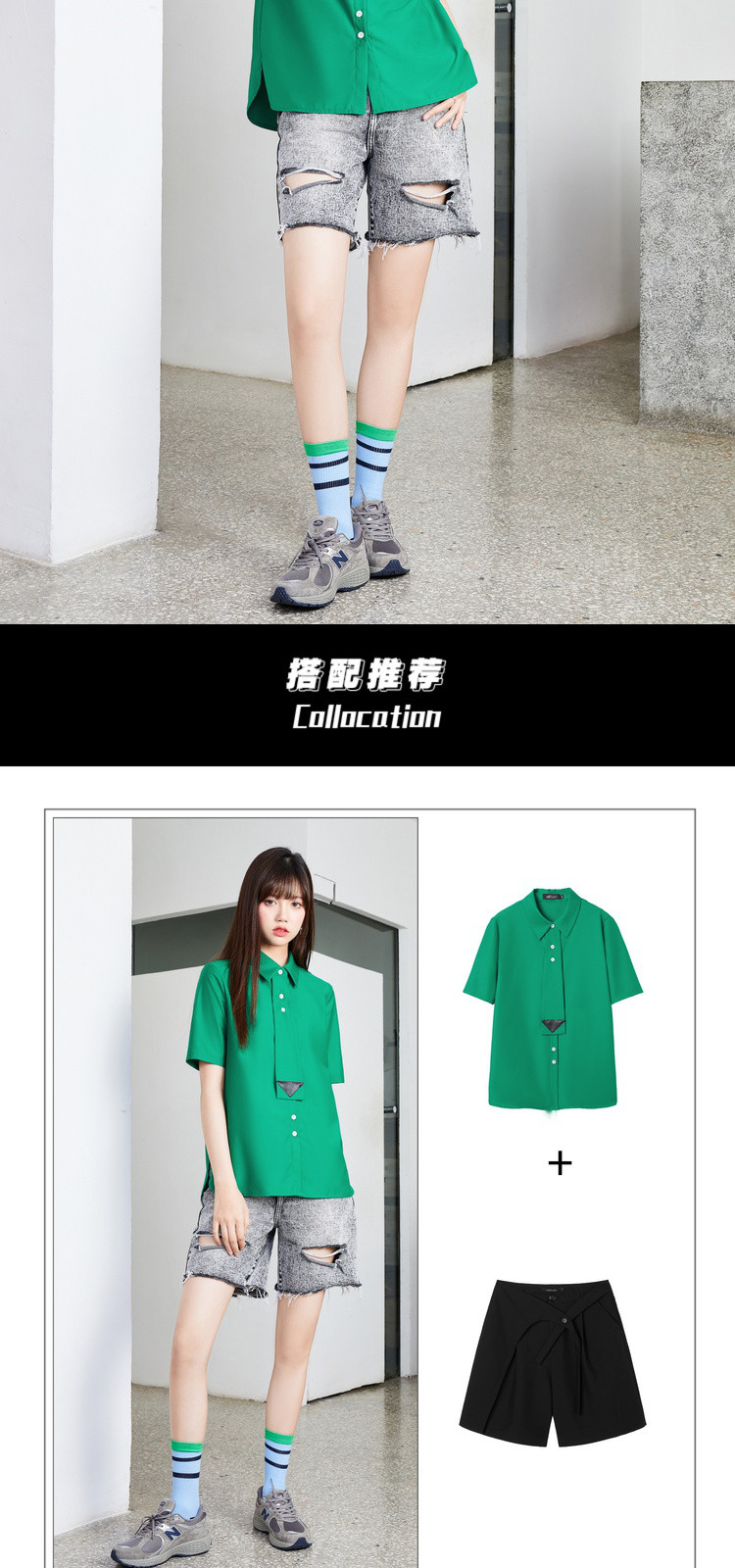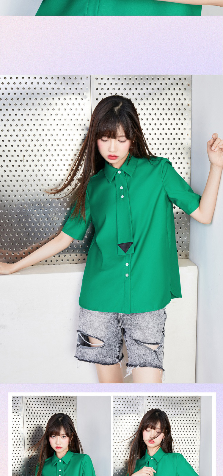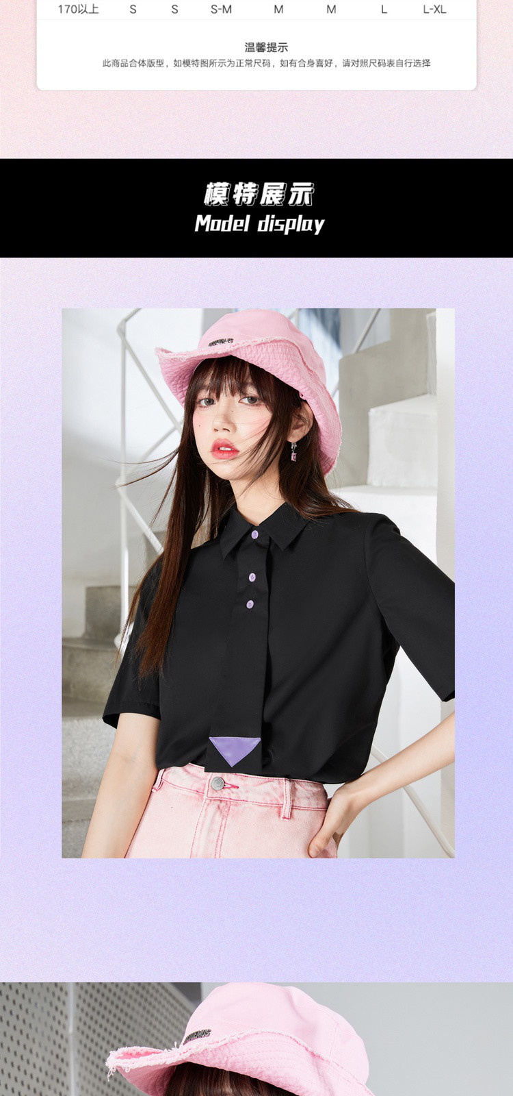 商品名称:撞色可拆卸领带高级感衬衫女设计感小众短袖上衣 987988