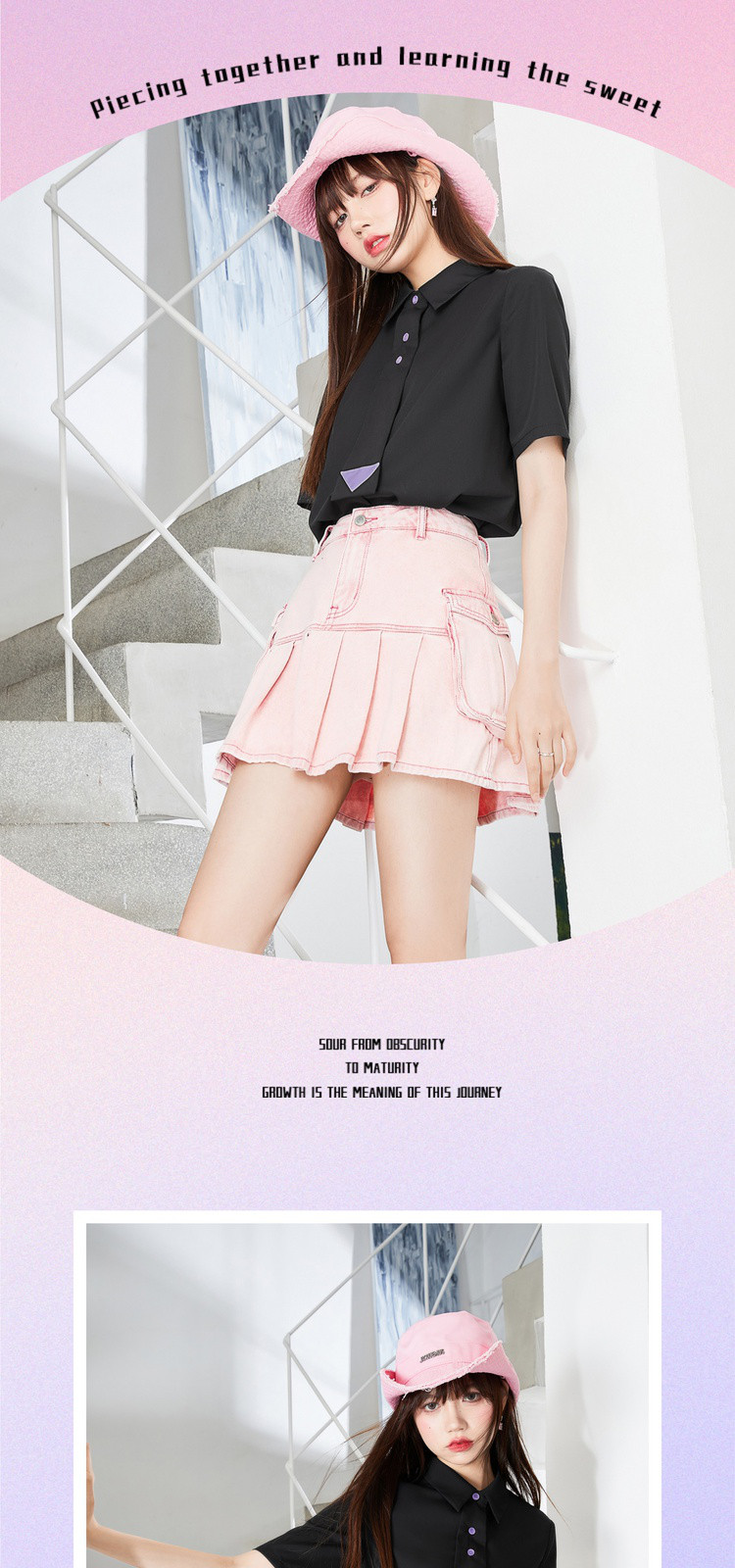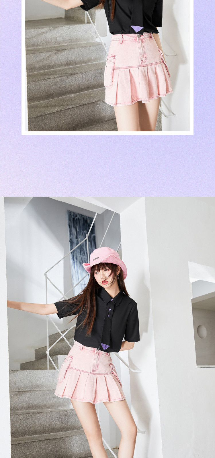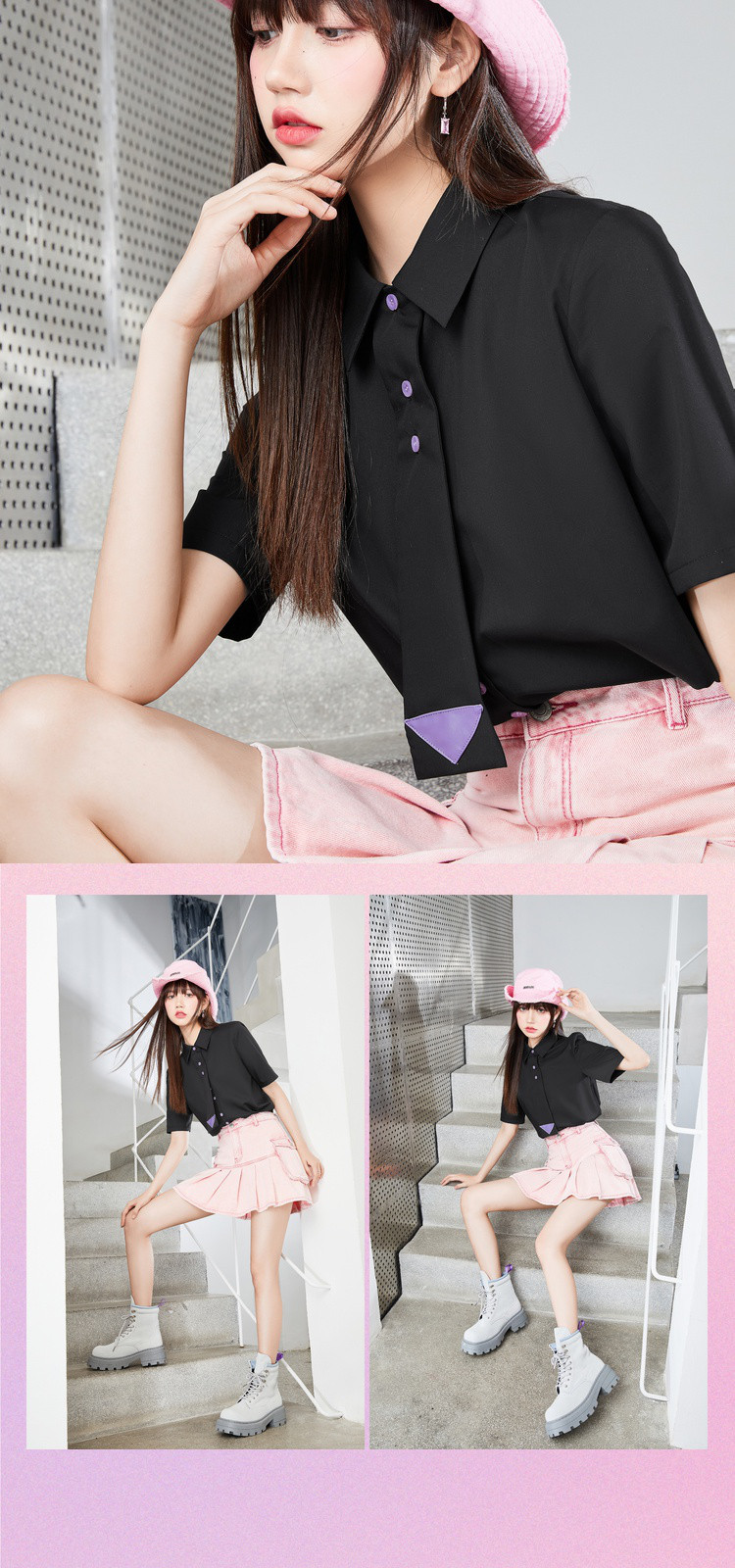 商品名称:撞色可拆卸领带高级感衬衫女设计感小众短袖上衣 987988