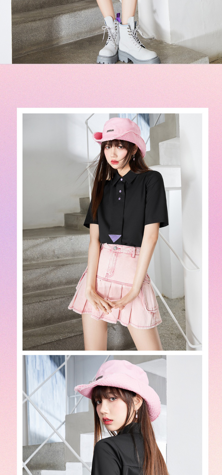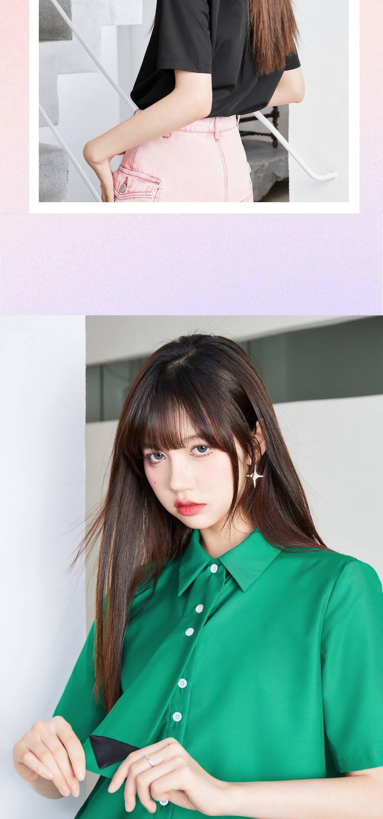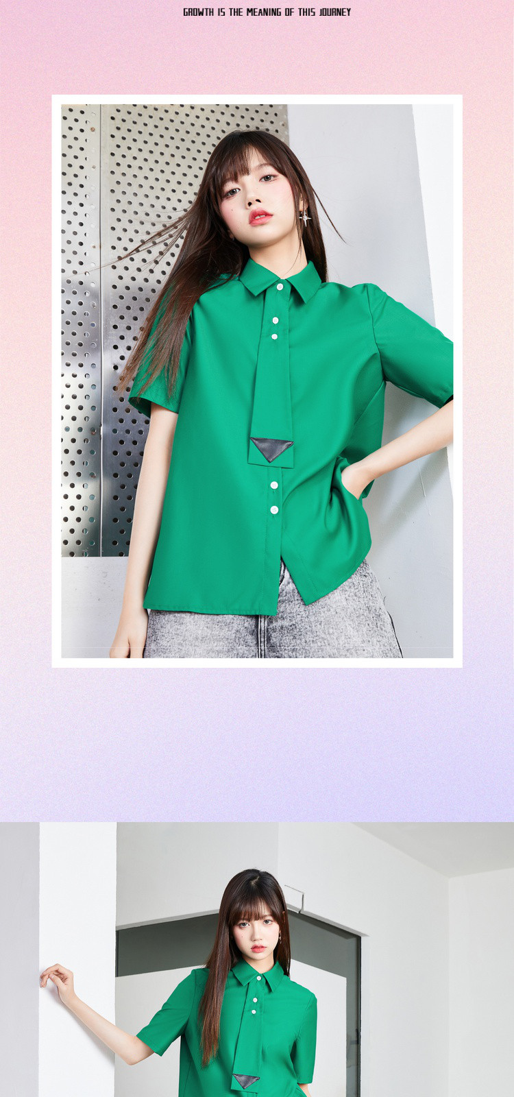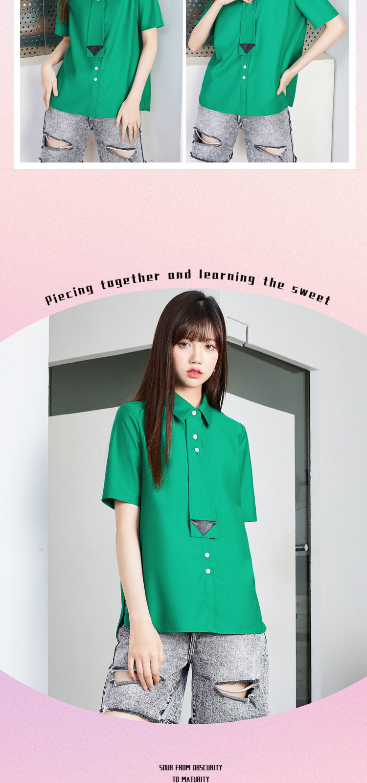 撞色可拆卸领带高级感衬衫女设计感小众短袖上衣 987988