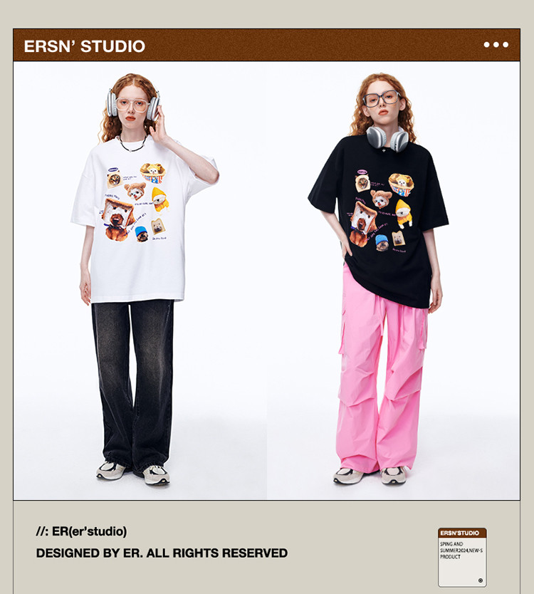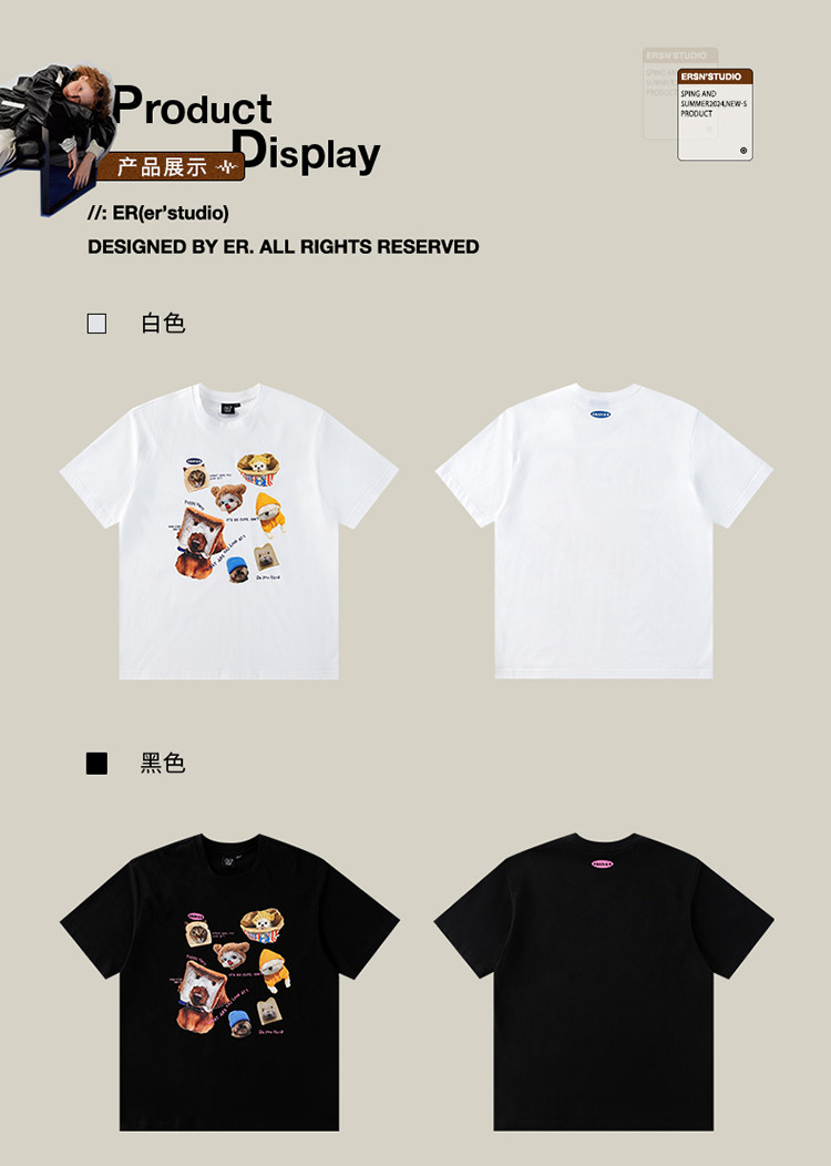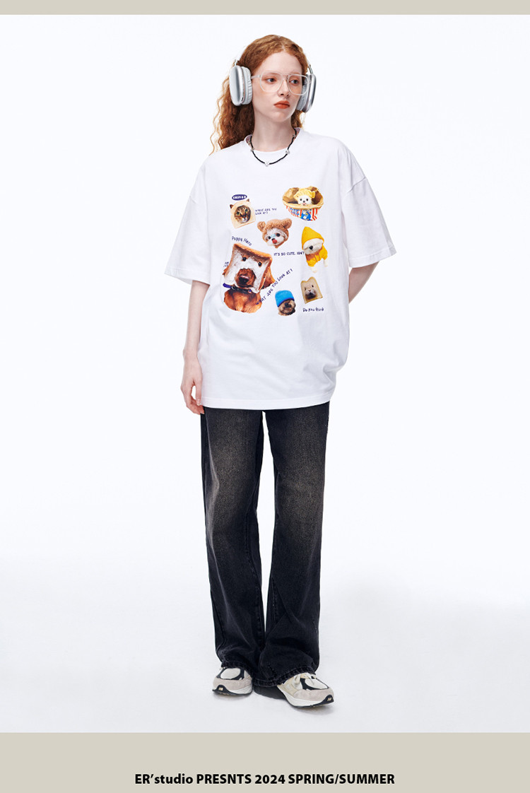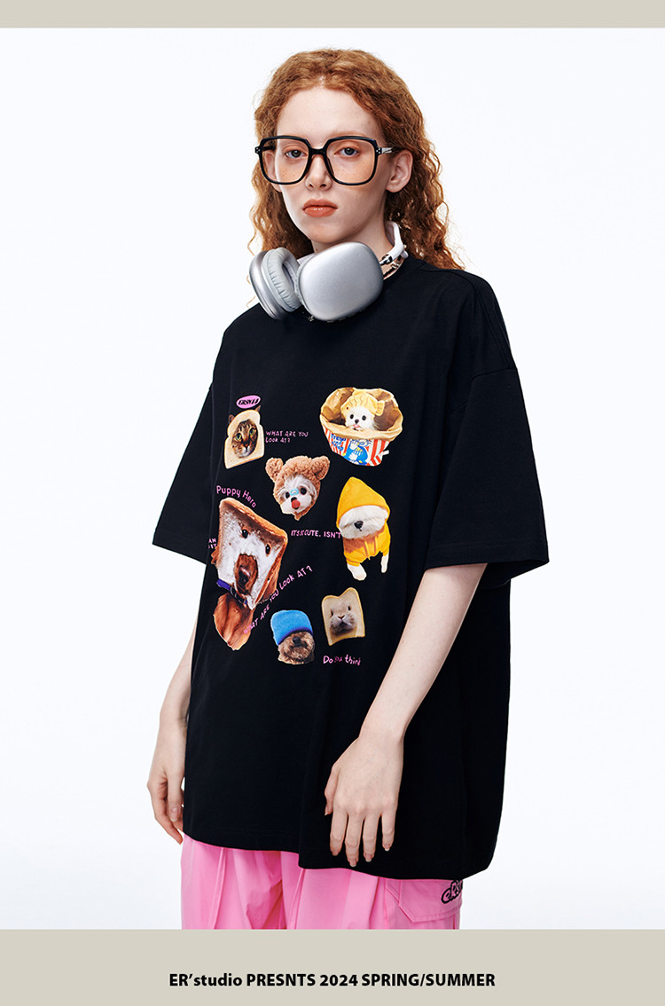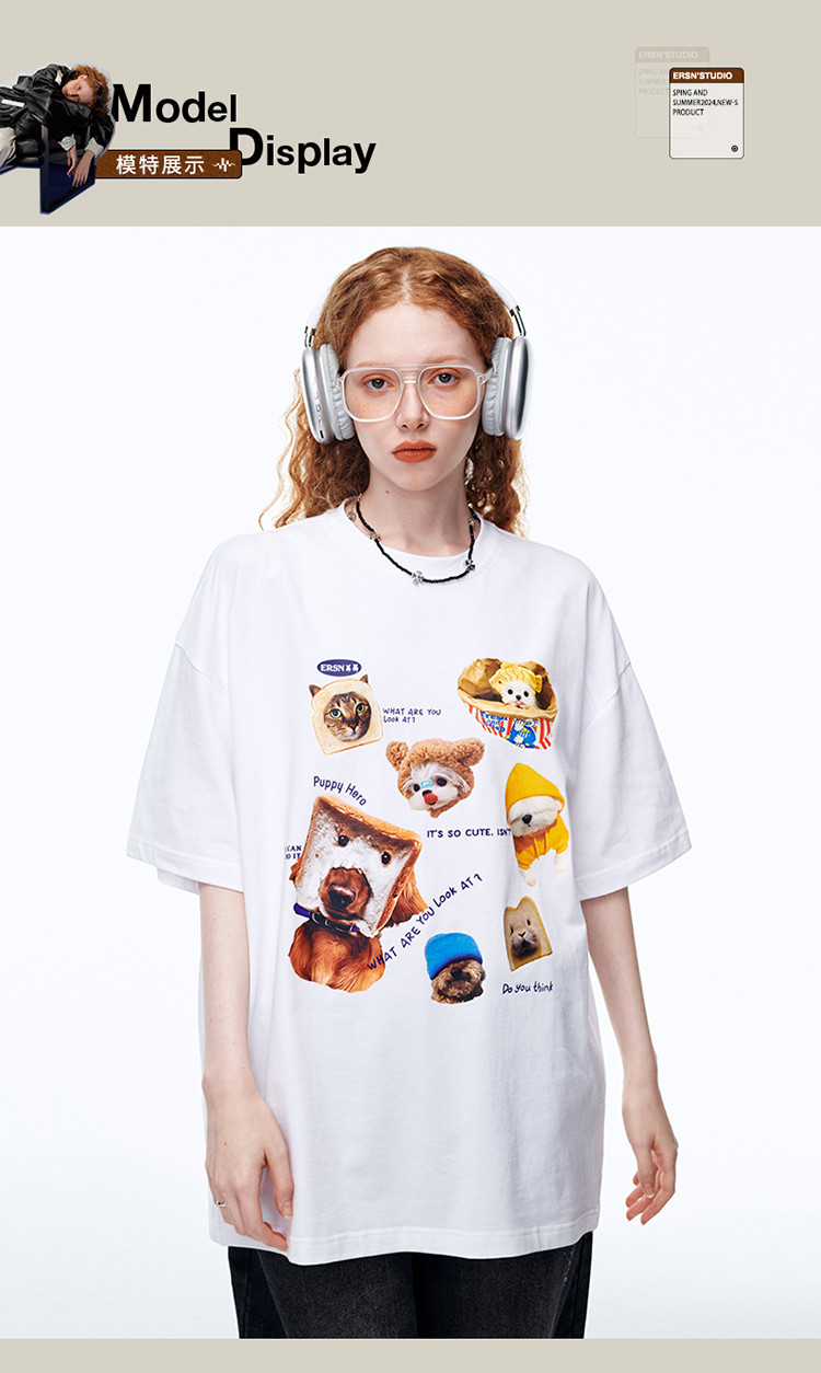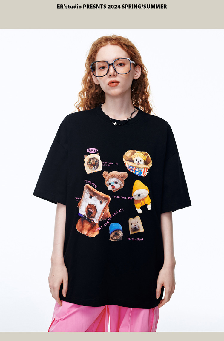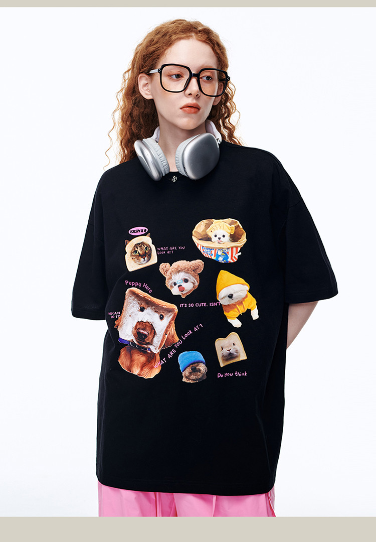 商品名称:【100%棉】萌宠俱乐部短袖T恤夏季潮牌情侣半袖体恤上衣 642711