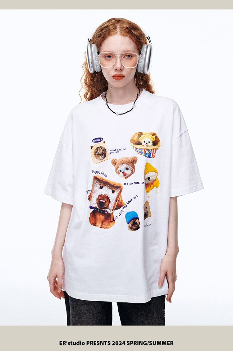 【100%棉】萌宠俱乐部短袖T恤夏季潮牌情侣半袖体恤上衣 642711