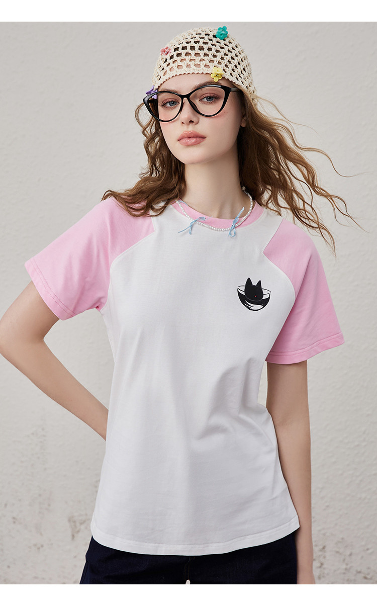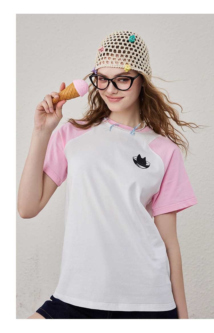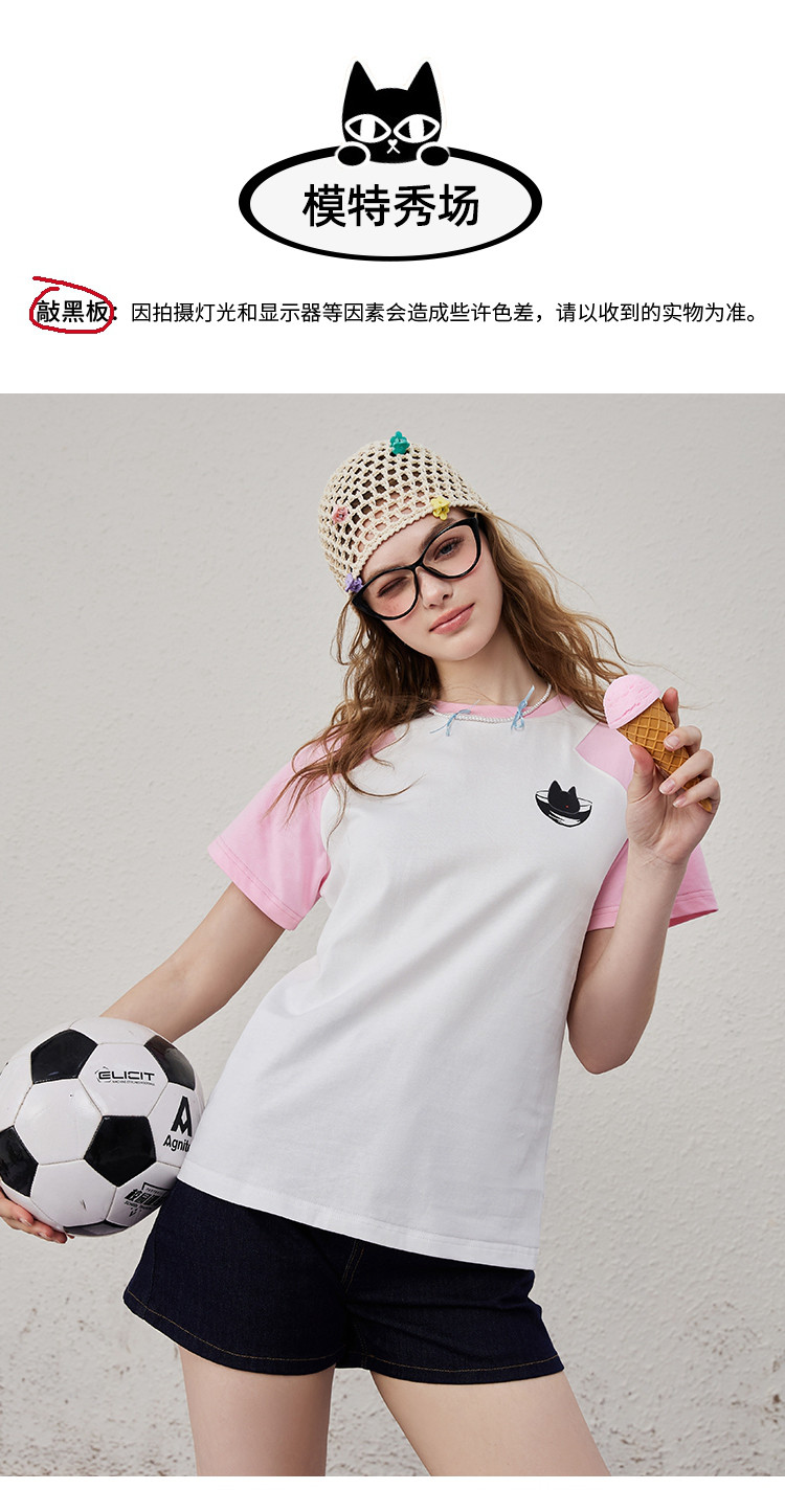 商品名称:【100%棉】撞色插肩袖运动舒适女式T恤夏季休闲短袖 304861
