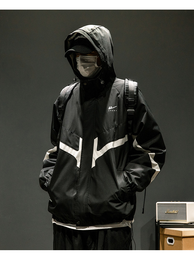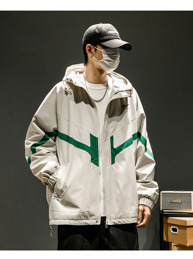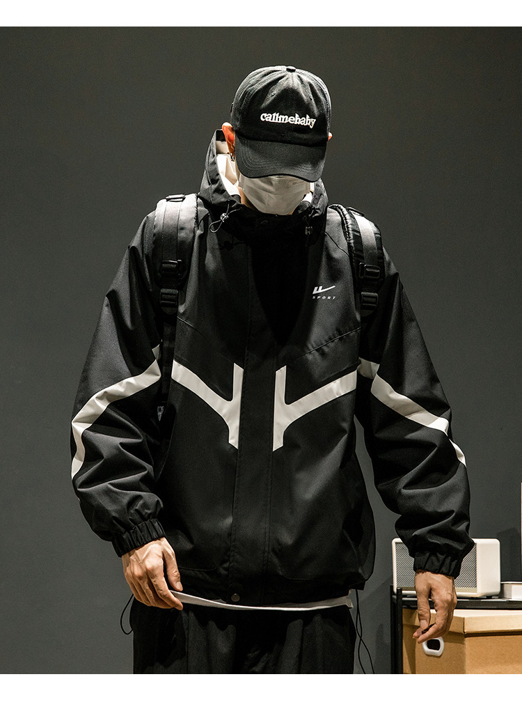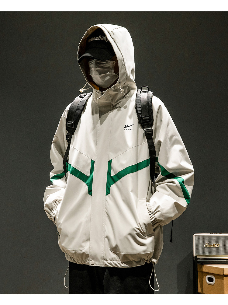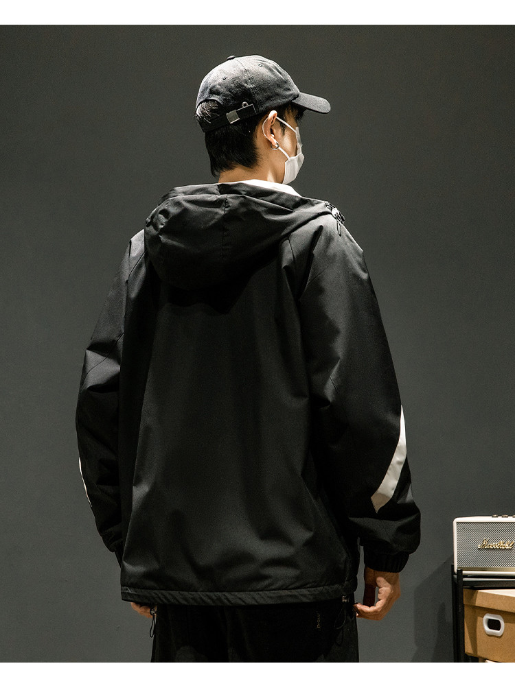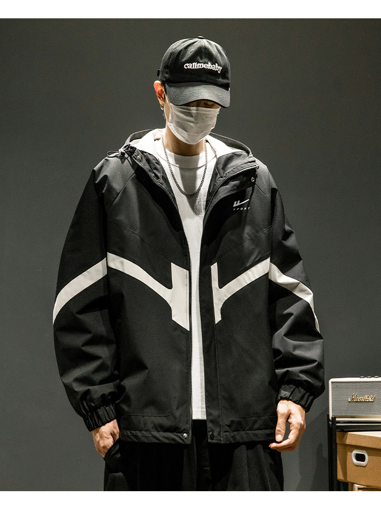 商品名称:潮牌工装外套男春秋季美式户外机能痞帅运动宽松拼接撞色连帽夹克 631763