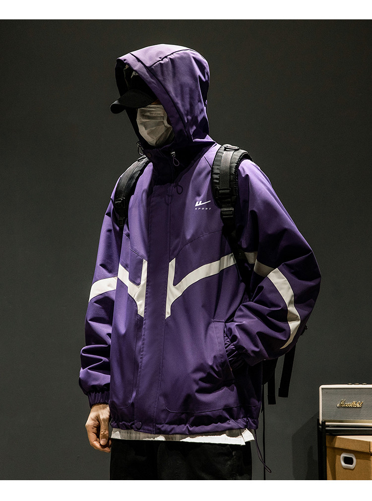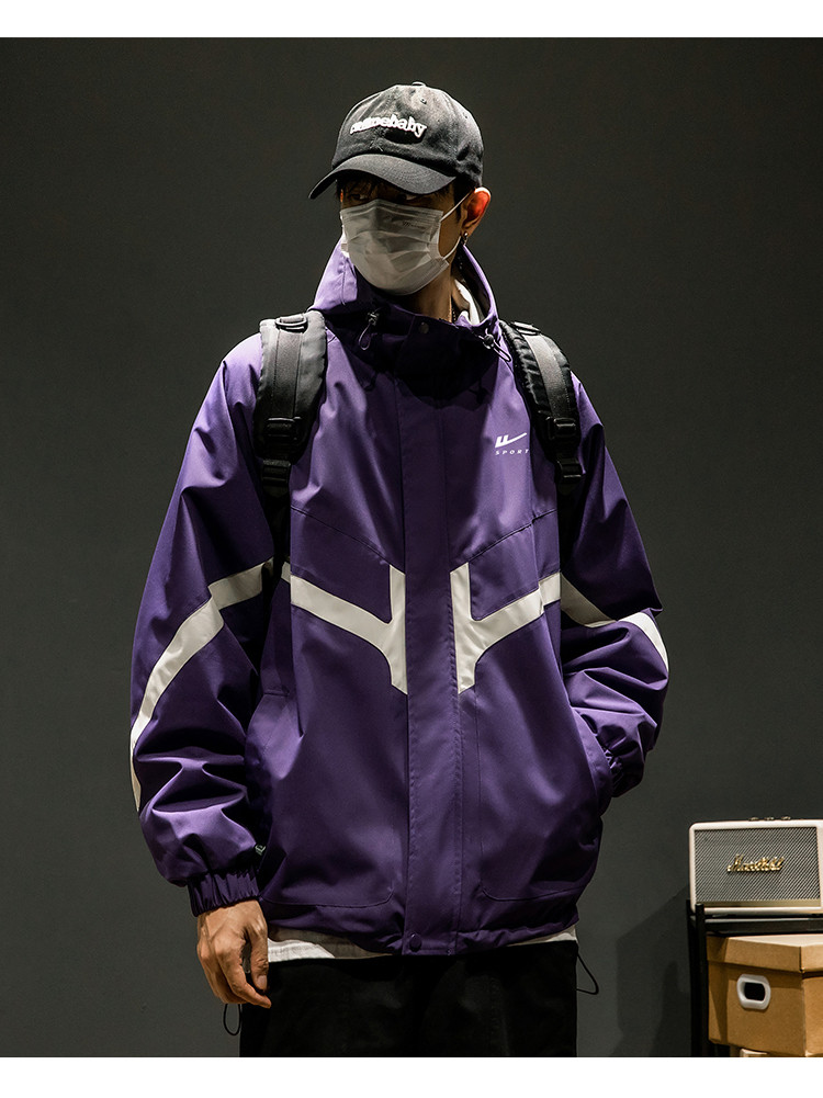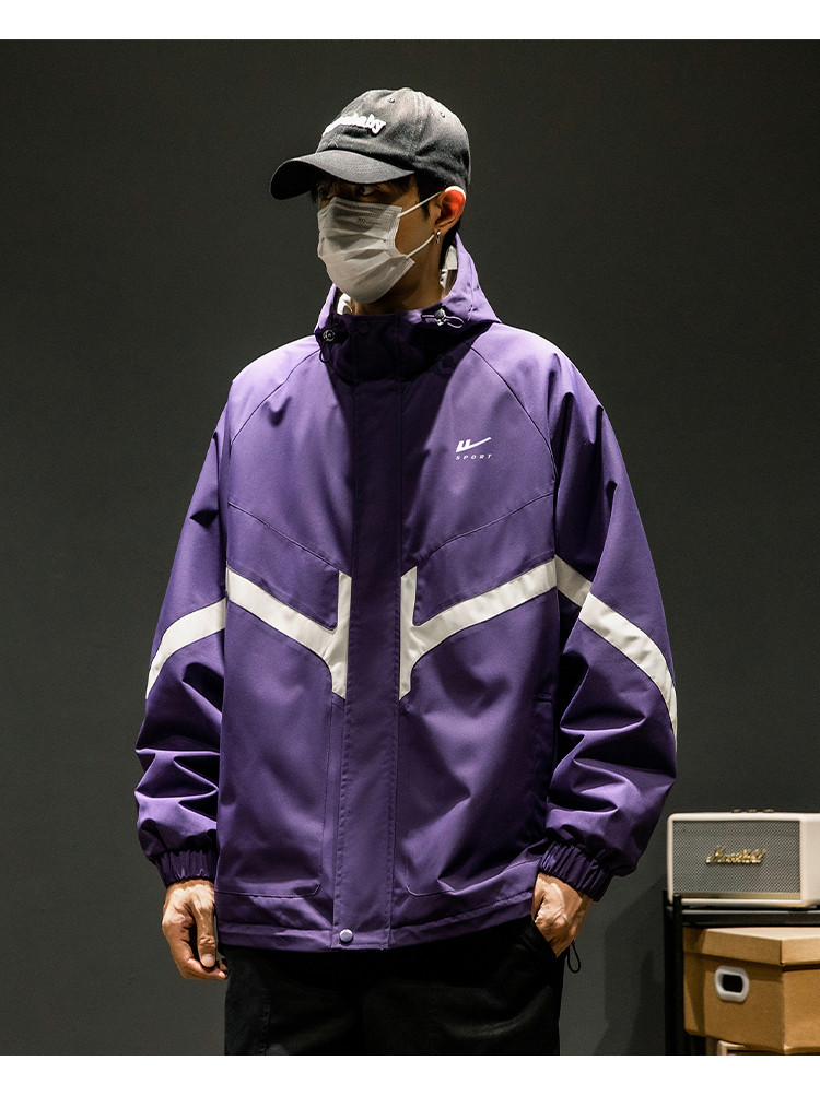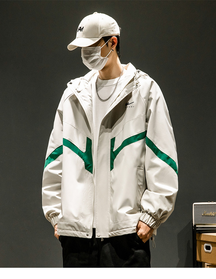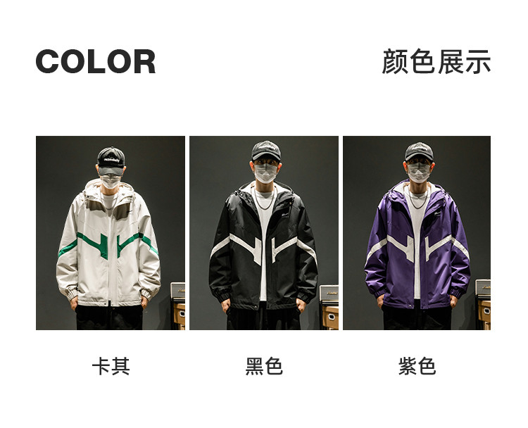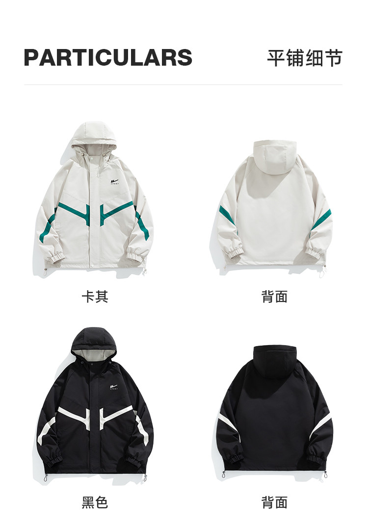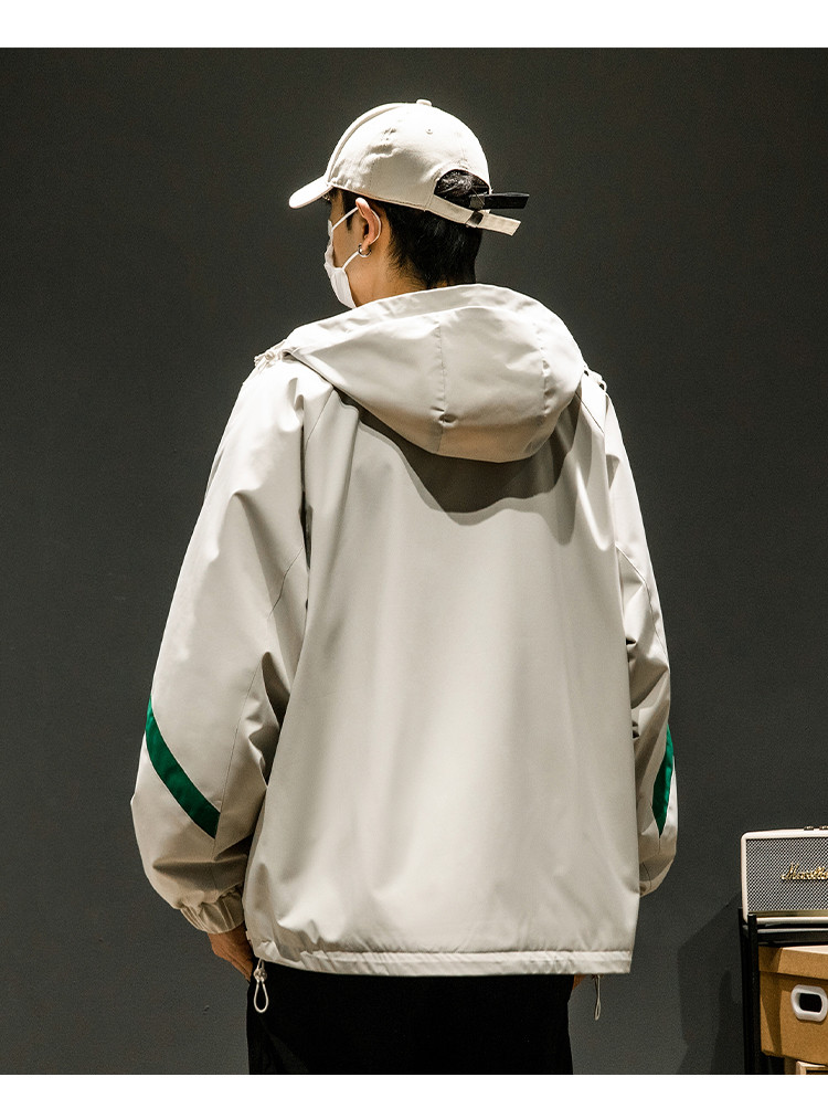 商品名称:潮牌工装外套男春秋季美式户外机能痞帅运动宽松拼接撞色连帽夹克 631763
