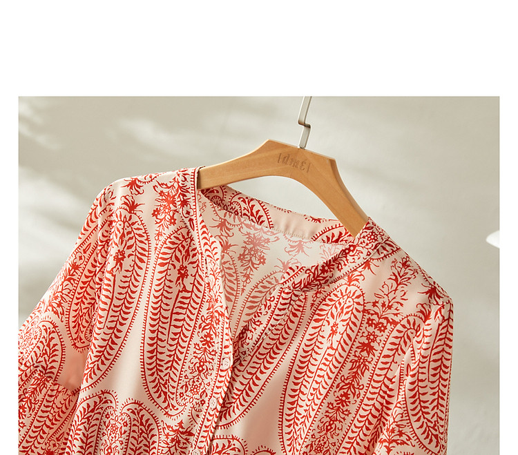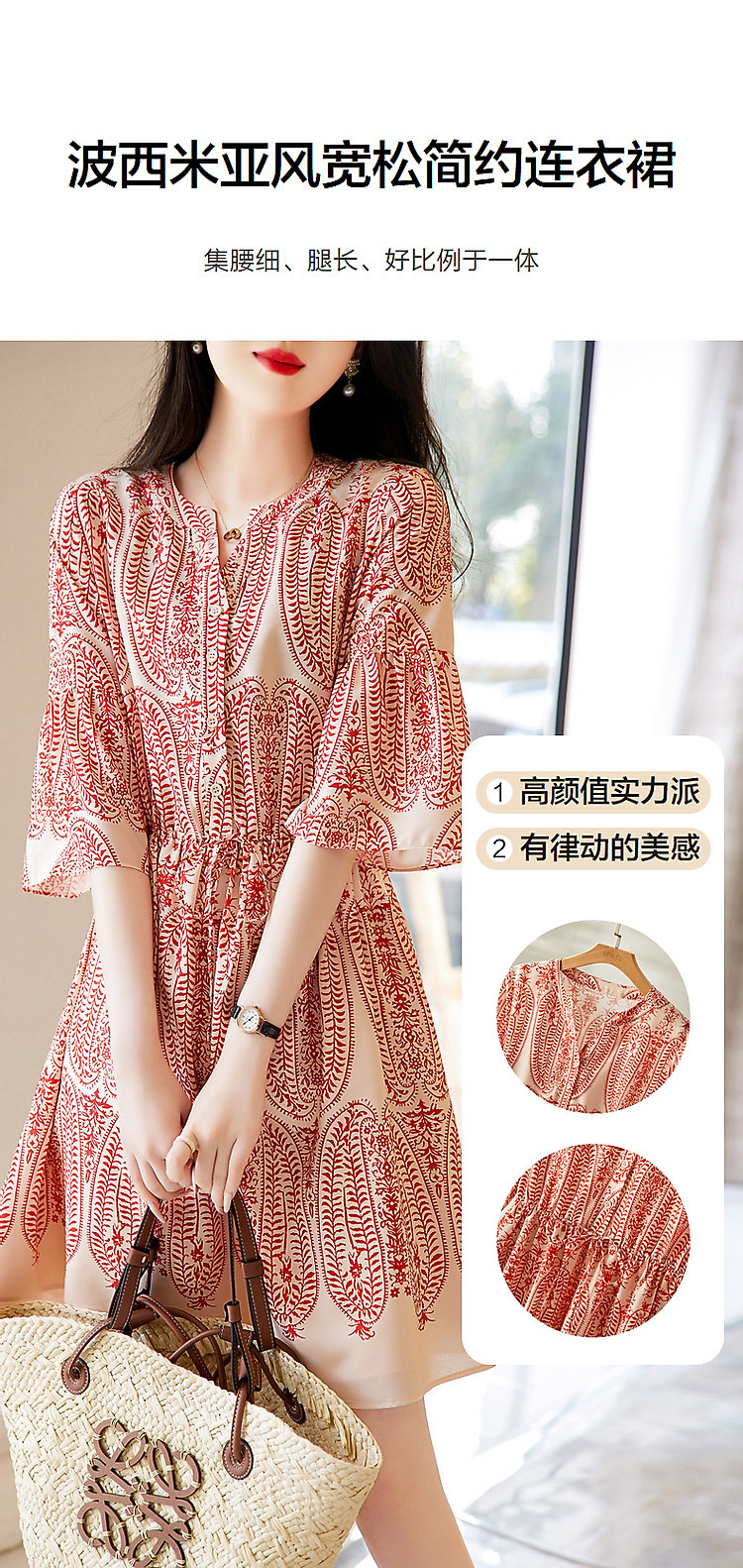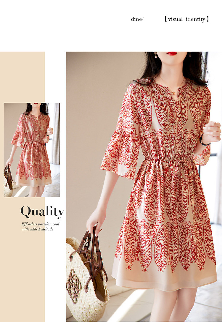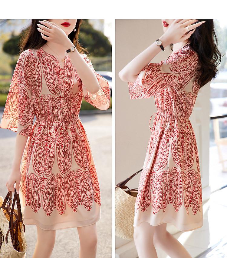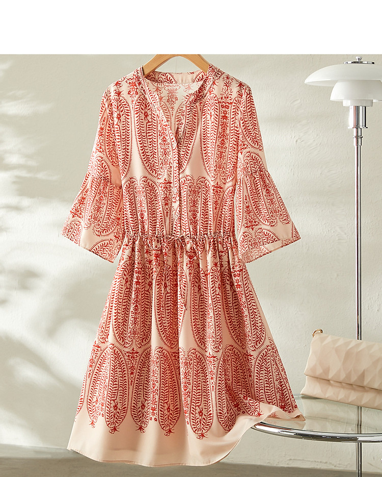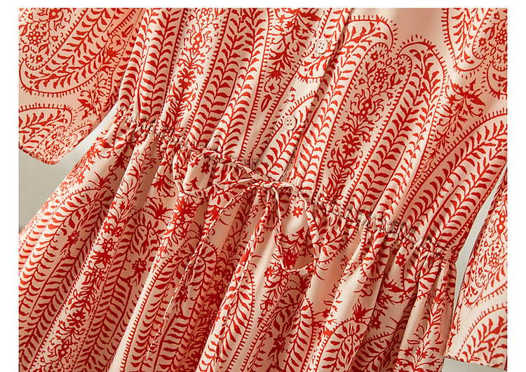 商品名称:【佩斯利印花】夏V领五分袖绑带X型伞裙a字连衣裙女中长款 387713