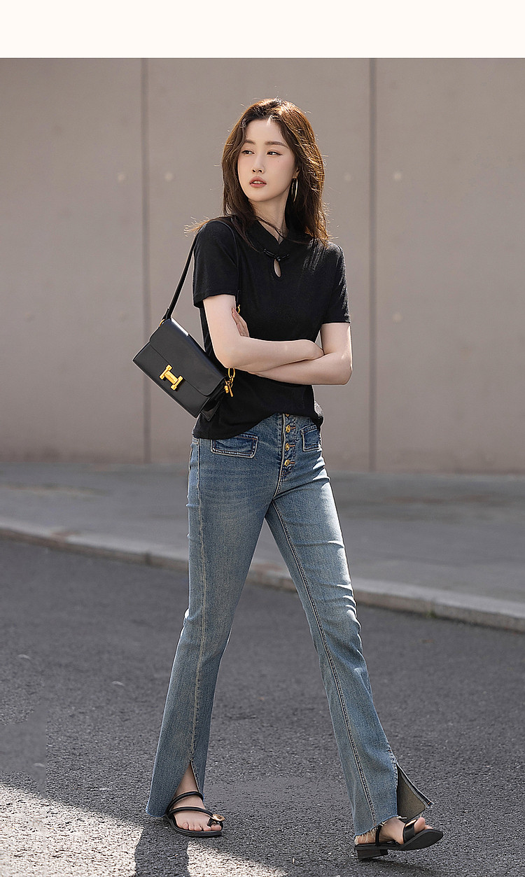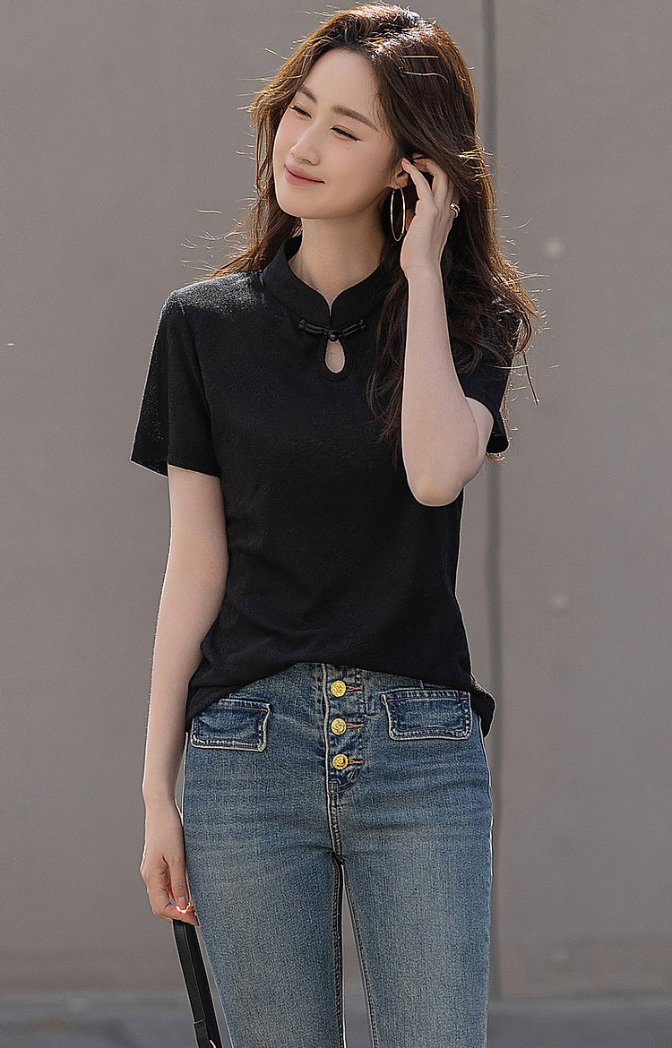 商品名称:【新中式针织t恤】夏简约国风立领精致提花短袖显瘦女式t恤 317569