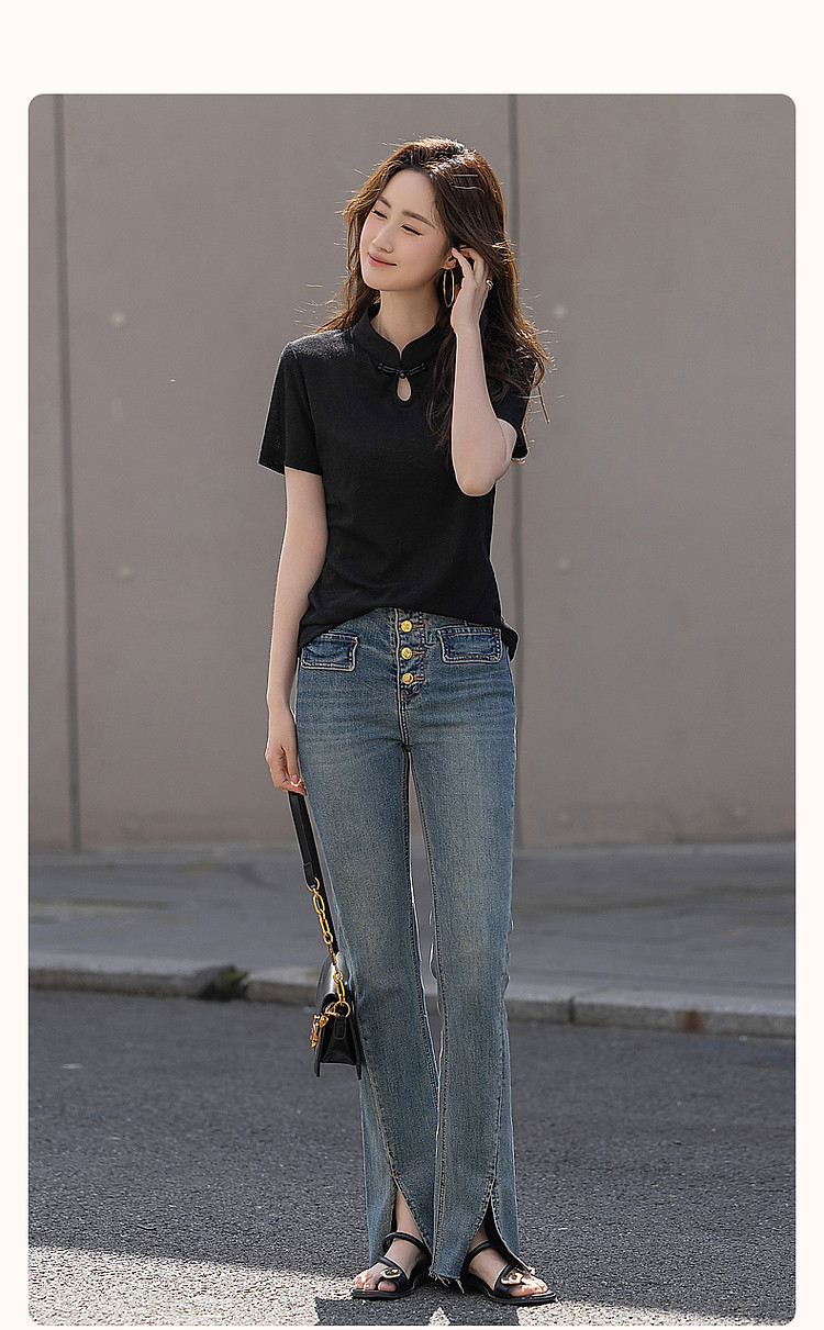 【新中式针织t恤】夏简约国风立领精致提花短袖显瘦女式t恤 317569