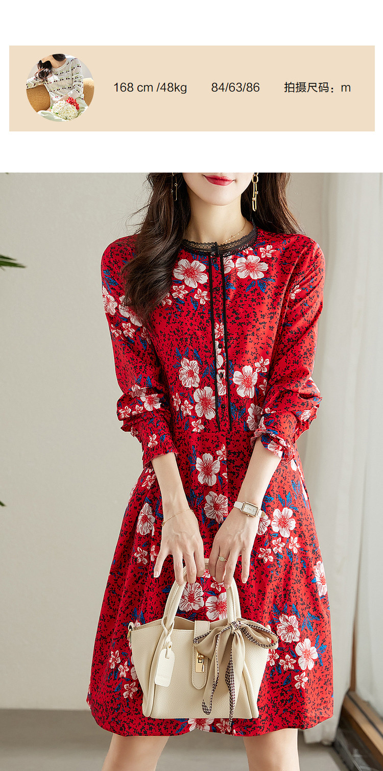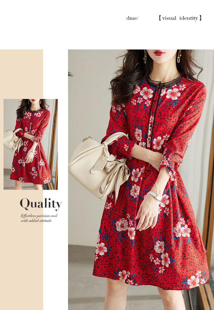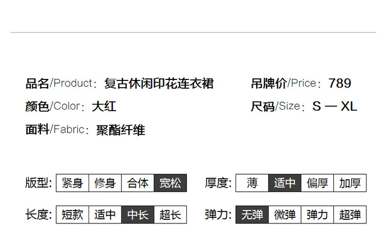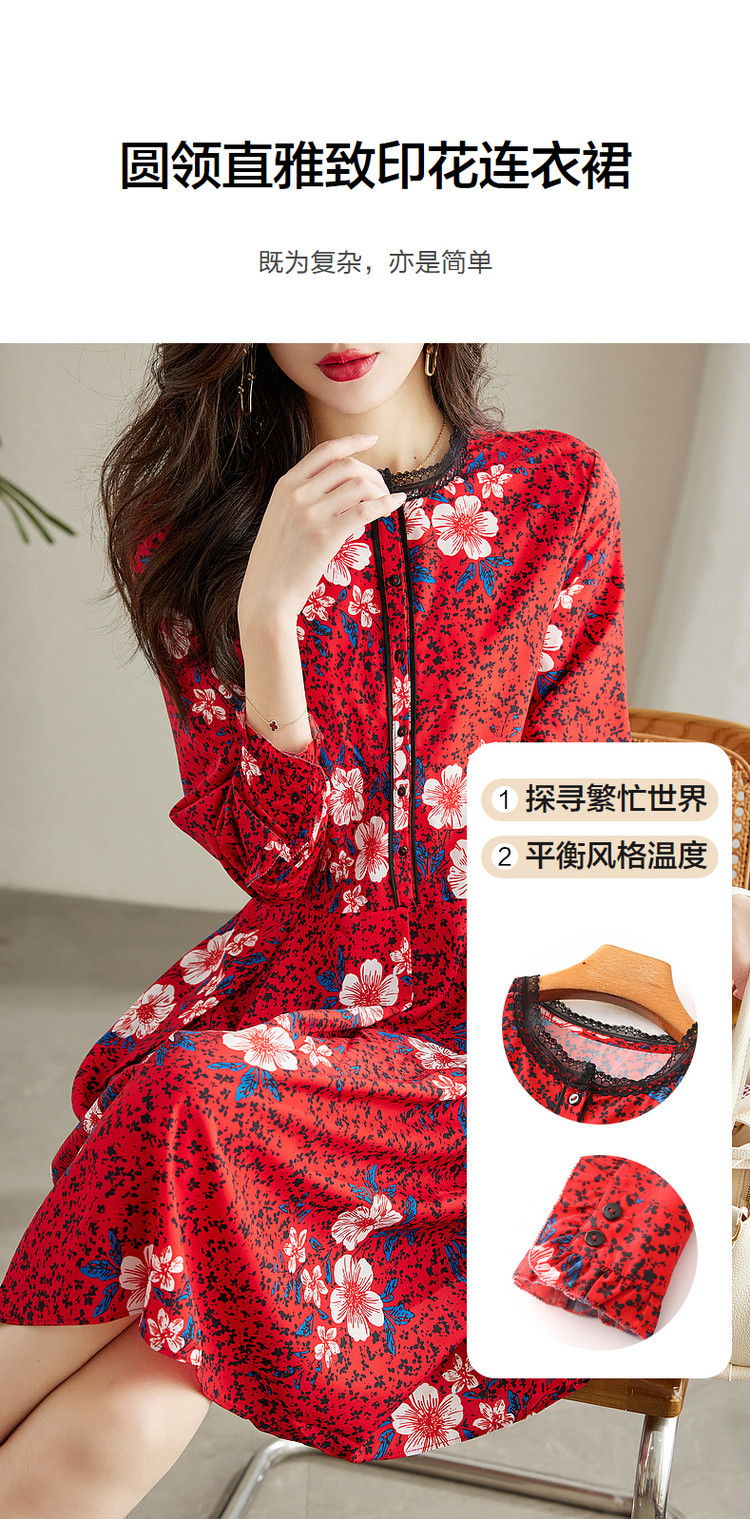 商品名称:【七分袖】秋圆领直筒中长款印花连衣裙女秋 927873